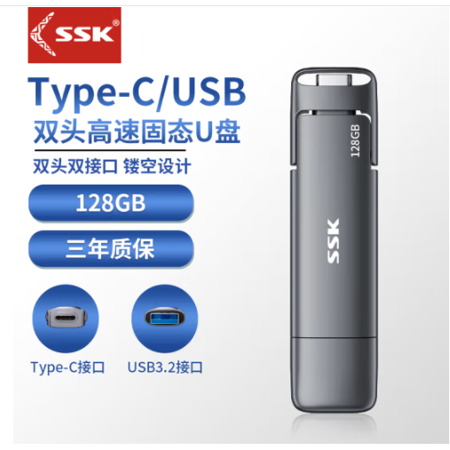 SSK飚王u盘Type-C双接口PSSD大容量USB3.2手机电脑两用优盘 2TB【560MB/s】双口u盘 SD301