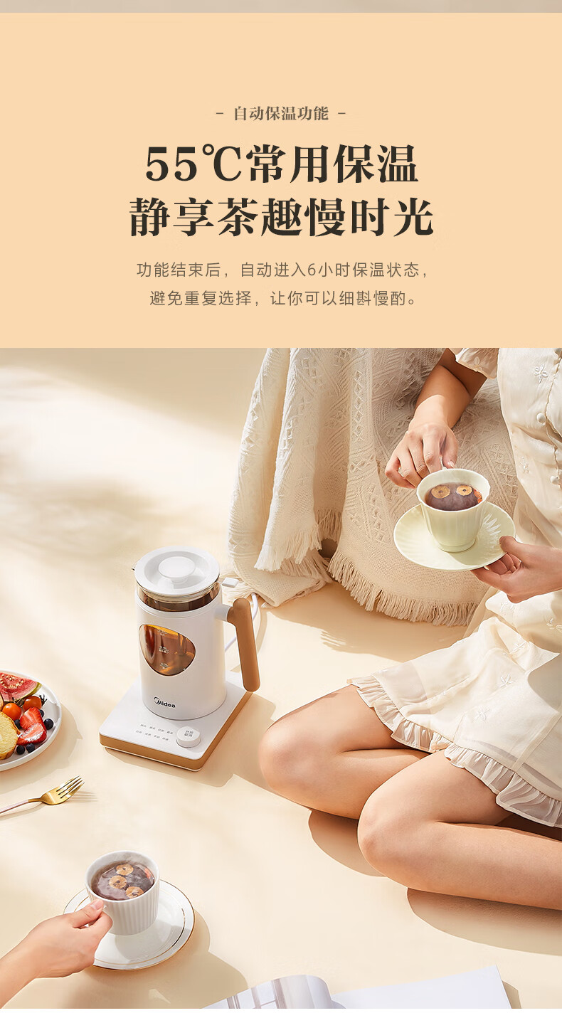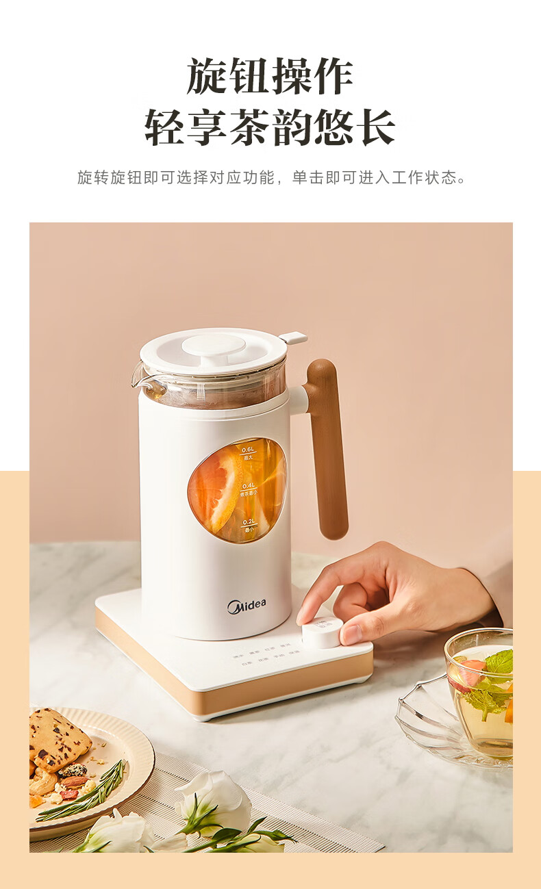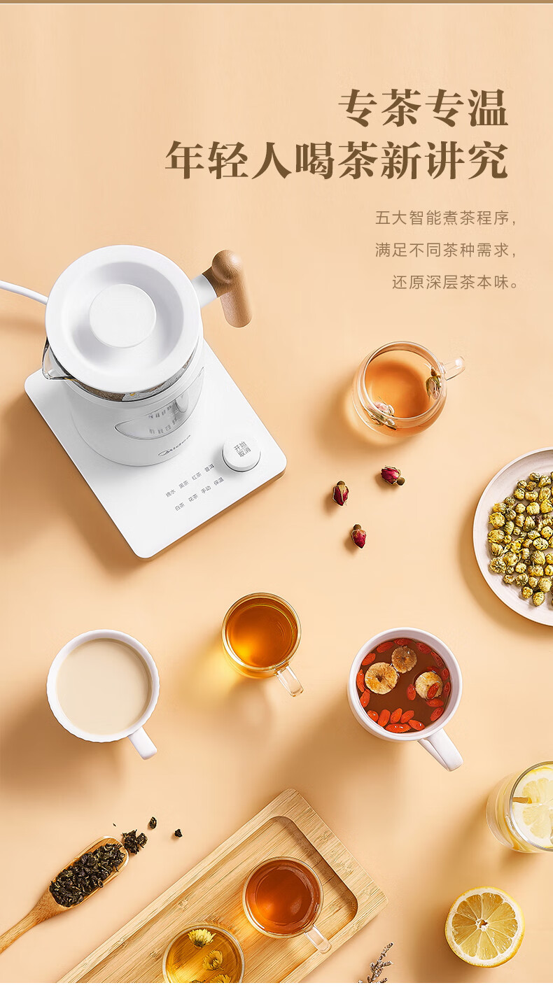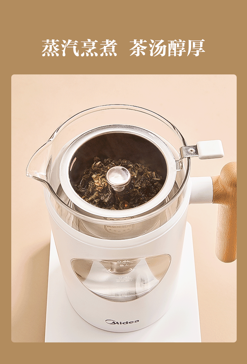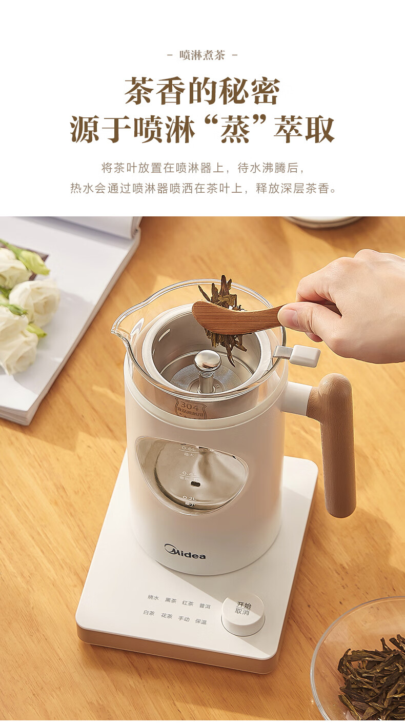 美的(Midea)养生壶 煮茶壶净醇0.6L煮茶器智能蒸汽喷淋式蒸茶器烧水壶提壶记忆煮茶壶茶具YS06P501