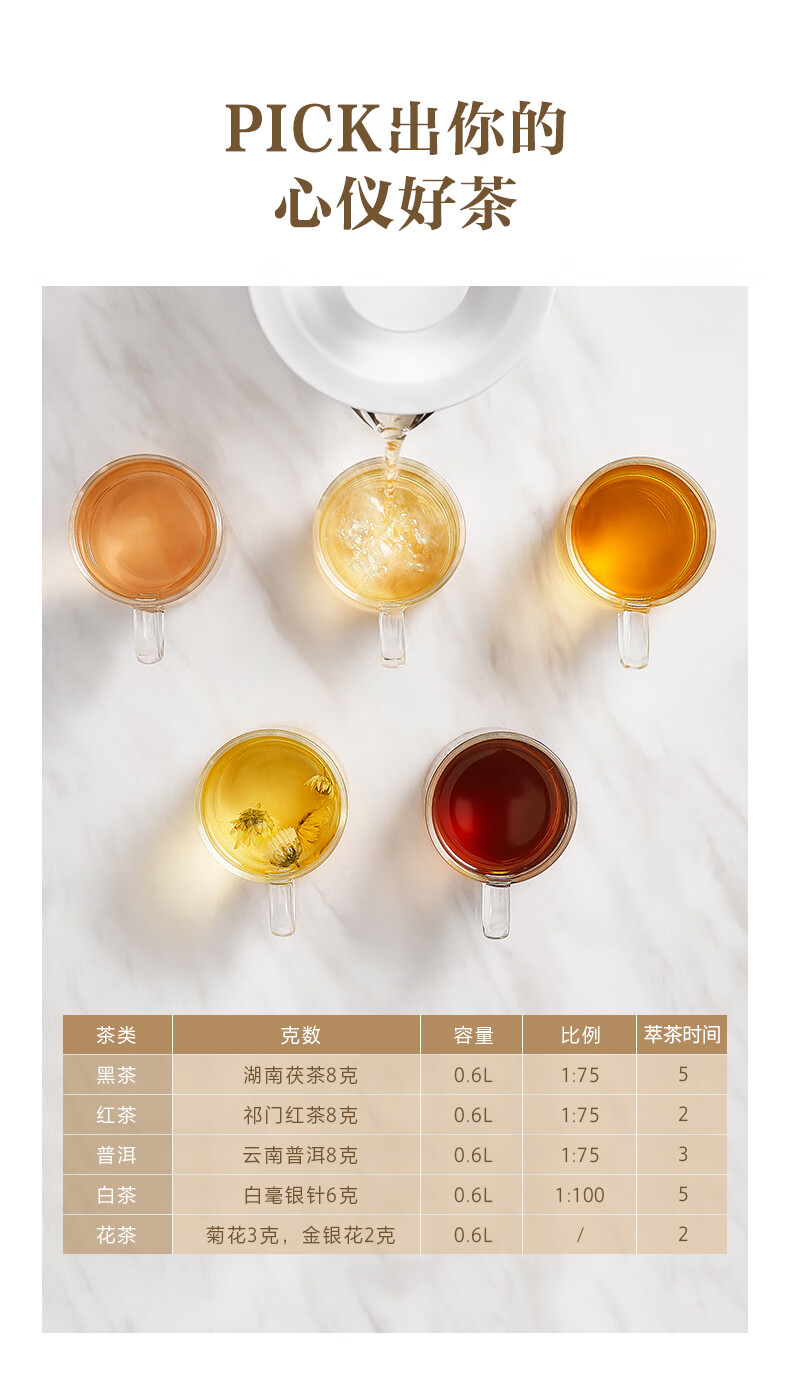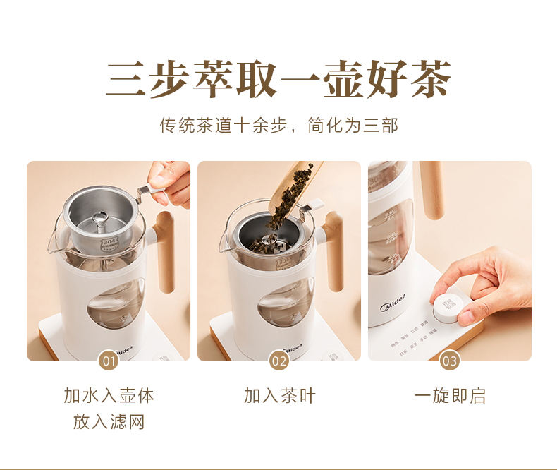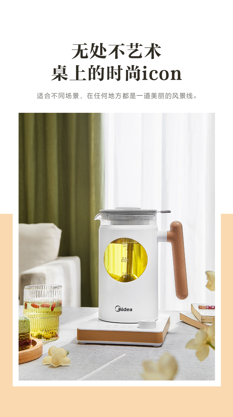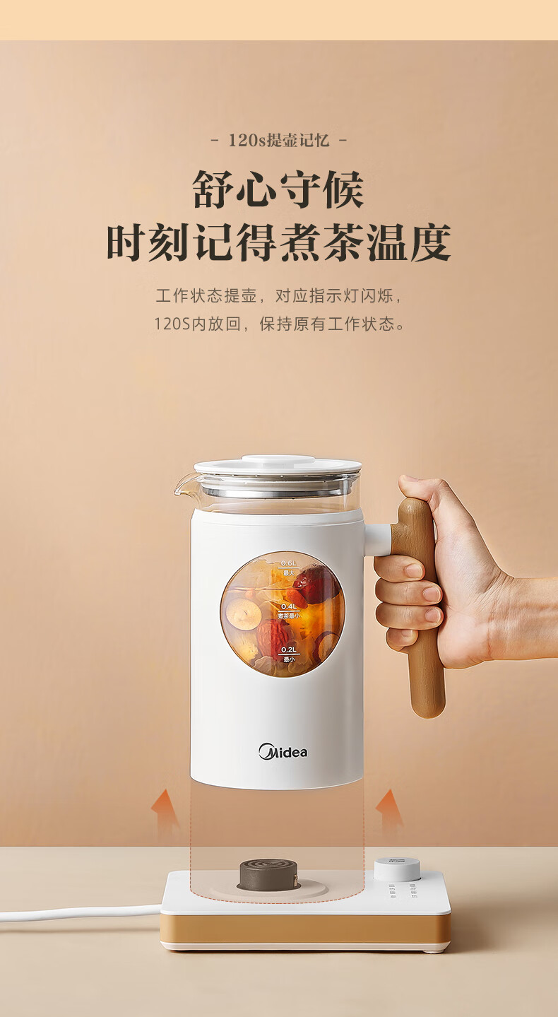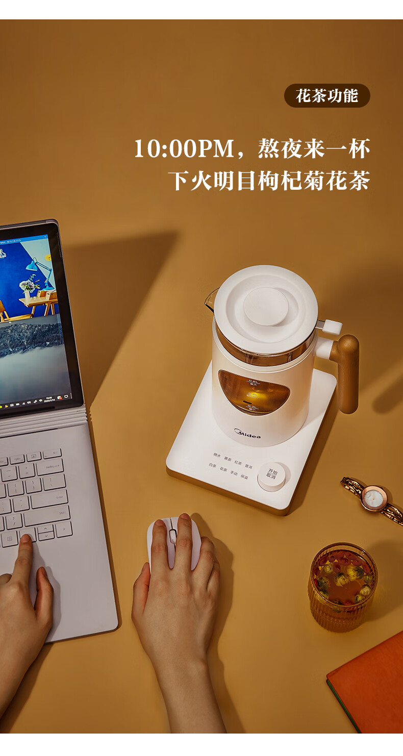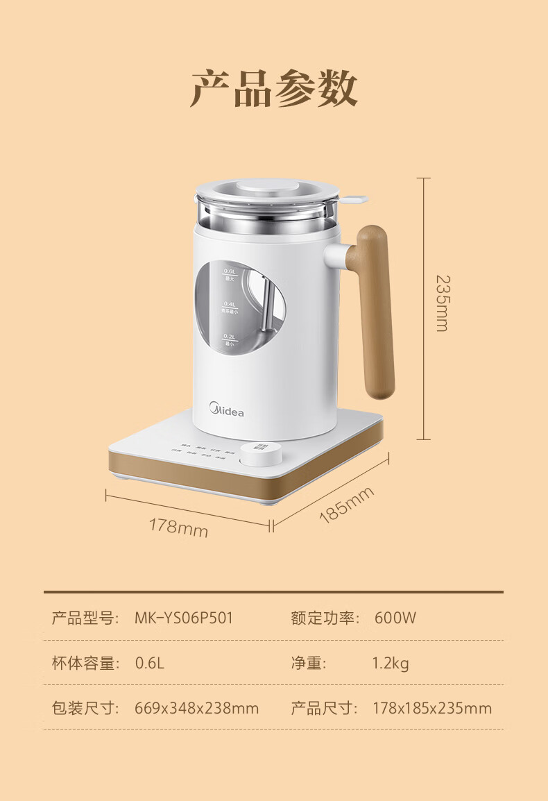 美的(Midea)养生壶 煮茶壶净醇0.6L煮茶器智能蒸汽喷淋式蒸茶器烧水壶提壶记忆煮茶壶茶具YS06P501
