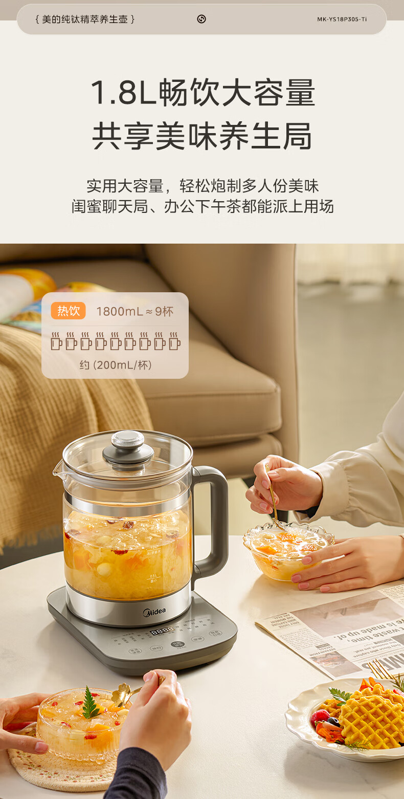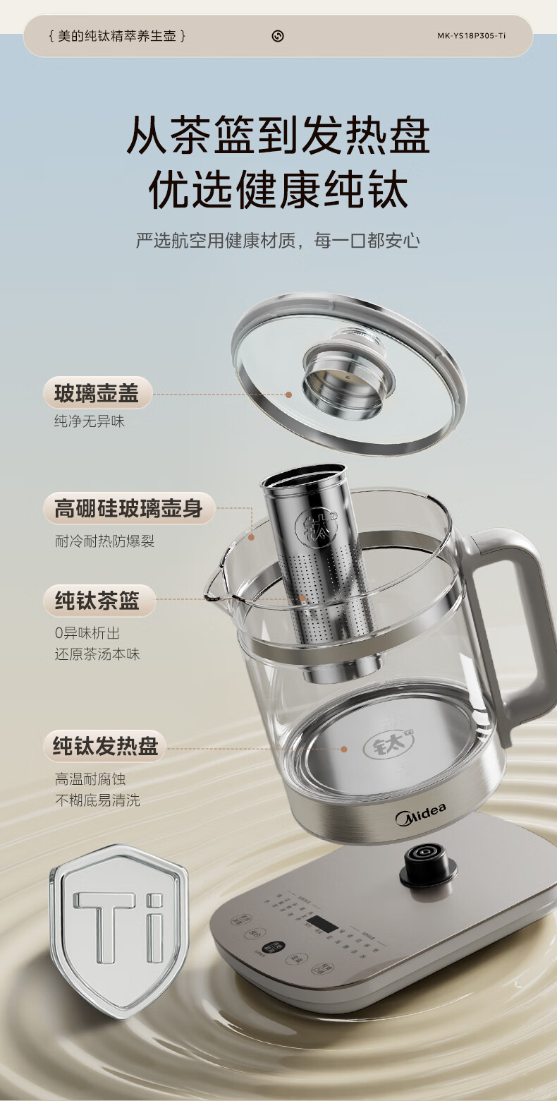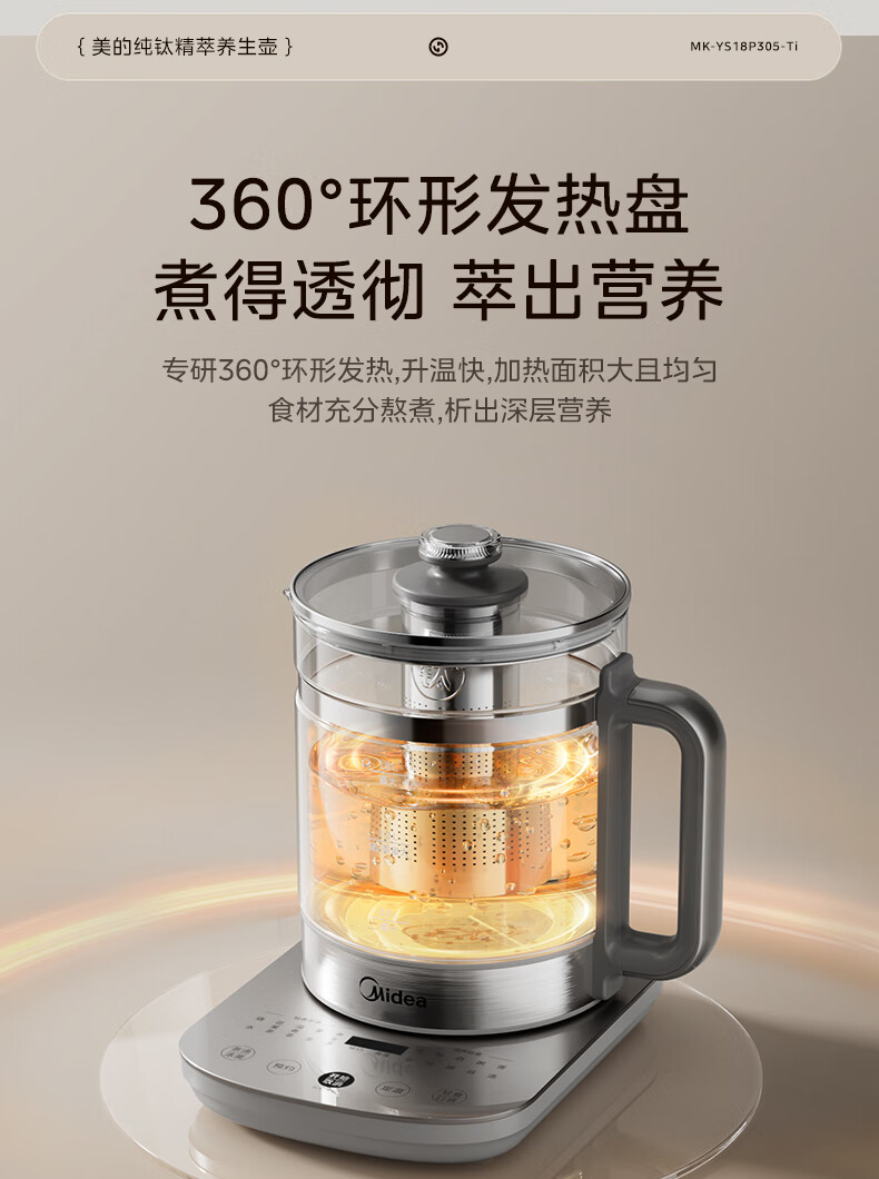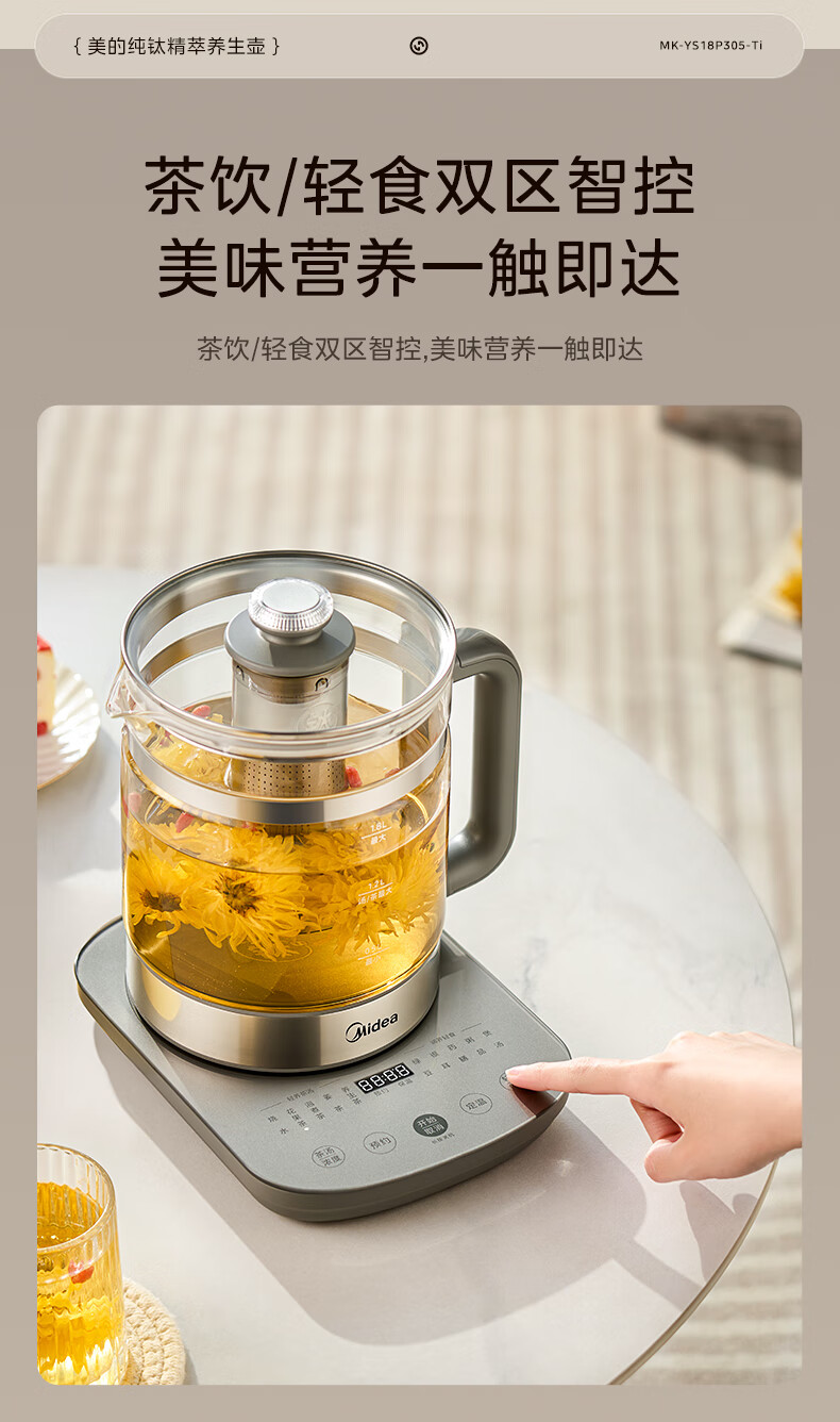 美的(Midea)纯钛养生壶 1.8L全自动大容量煮茶器烧水壶 纯钛茶篮 家用电热水壶花茶壶 恒温煮茶壶YS18P305-Ti