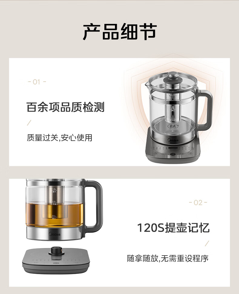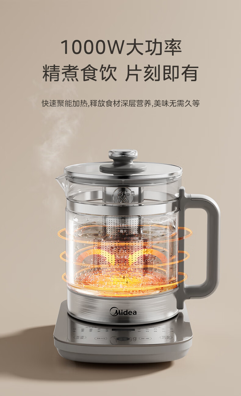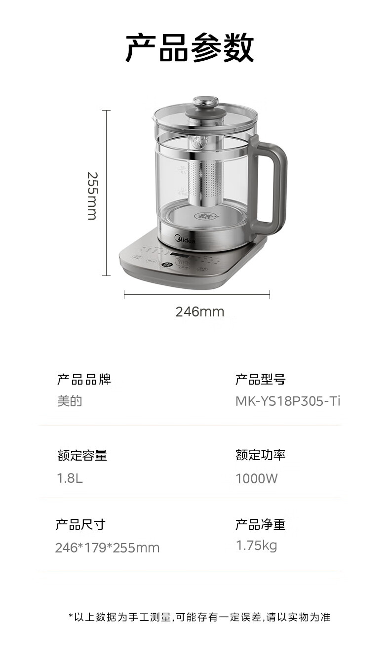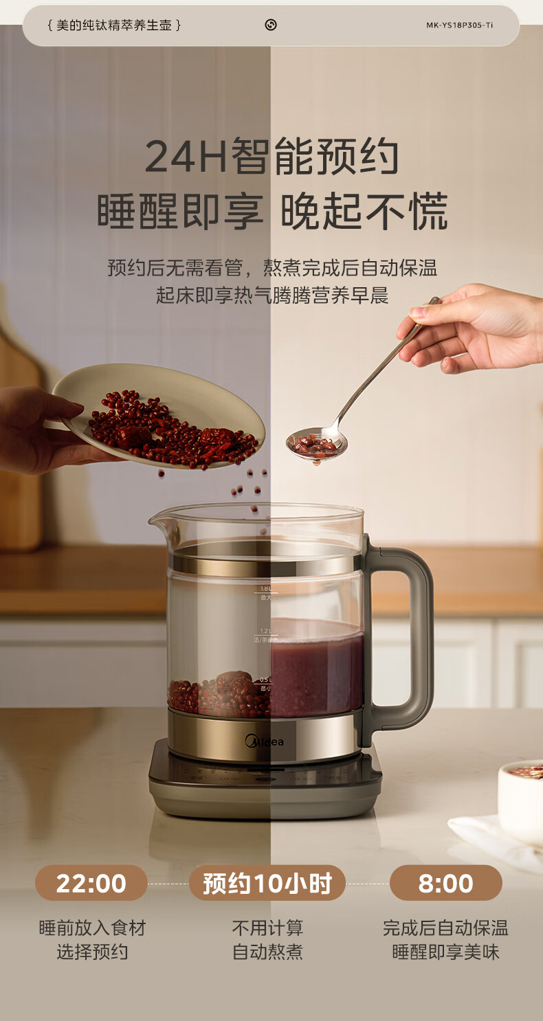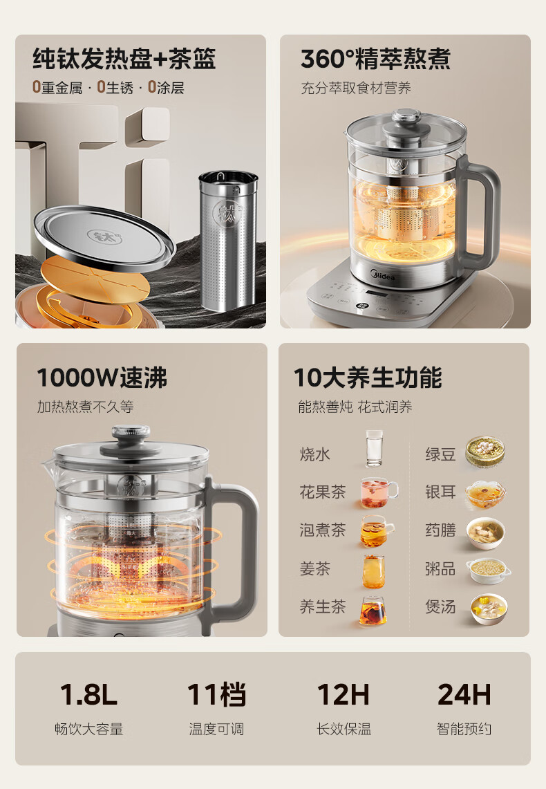 美的(Midea)纯钛养生壶 1.8L全自动大容量煮茶器烧水壶 纯钛茶篮 家用电热水壶花茶壶 恒温煮茶壶YS18P305-Ti