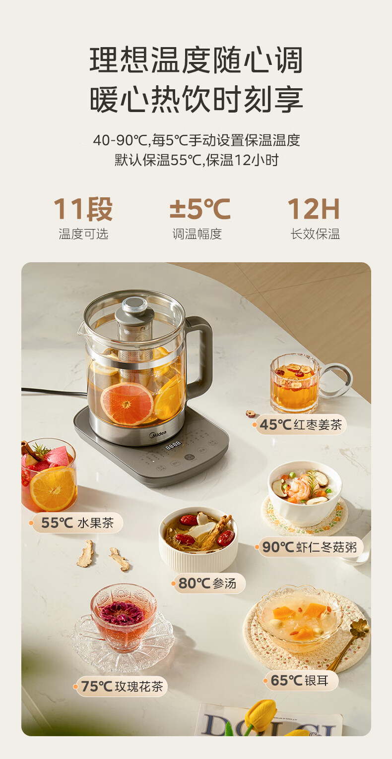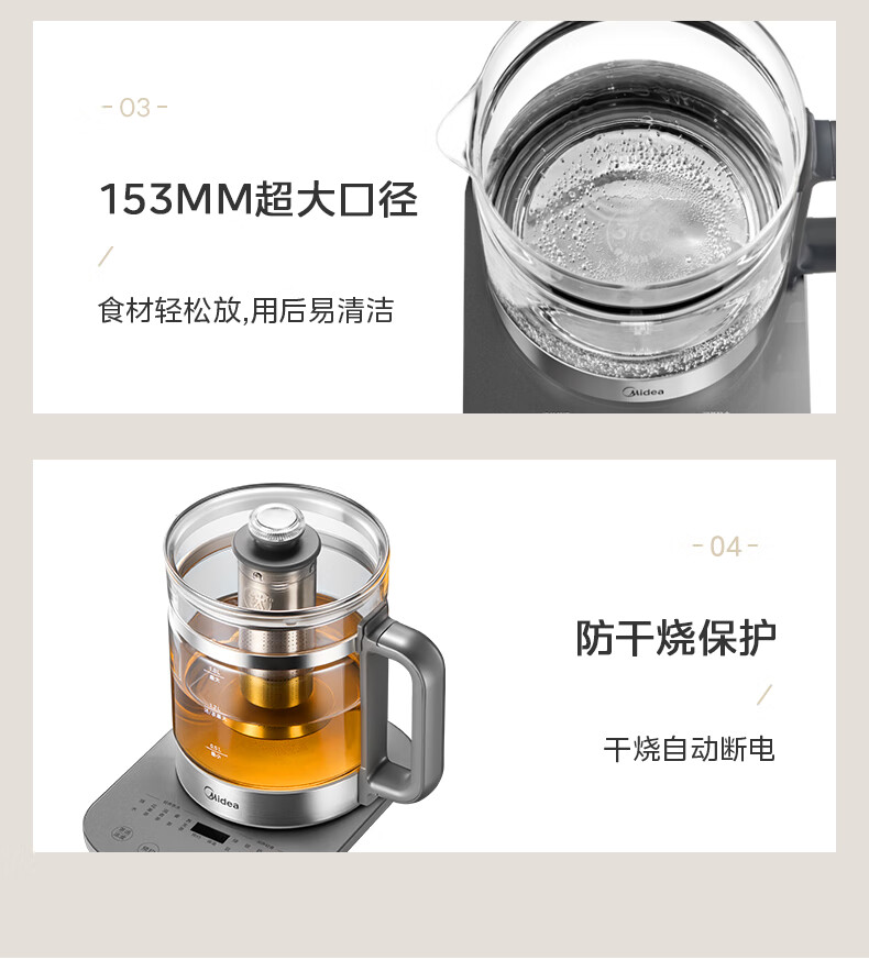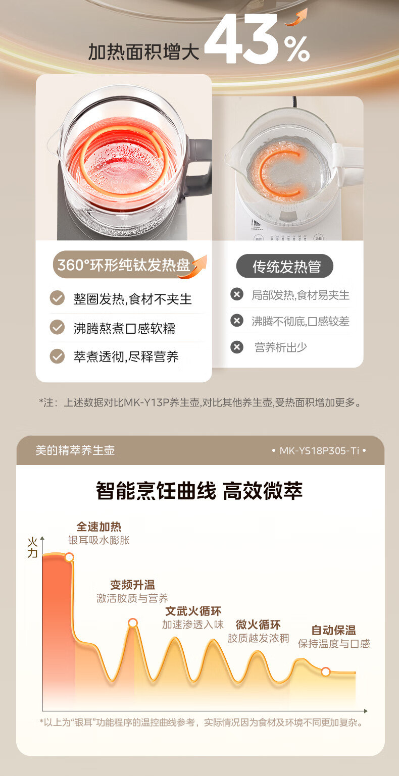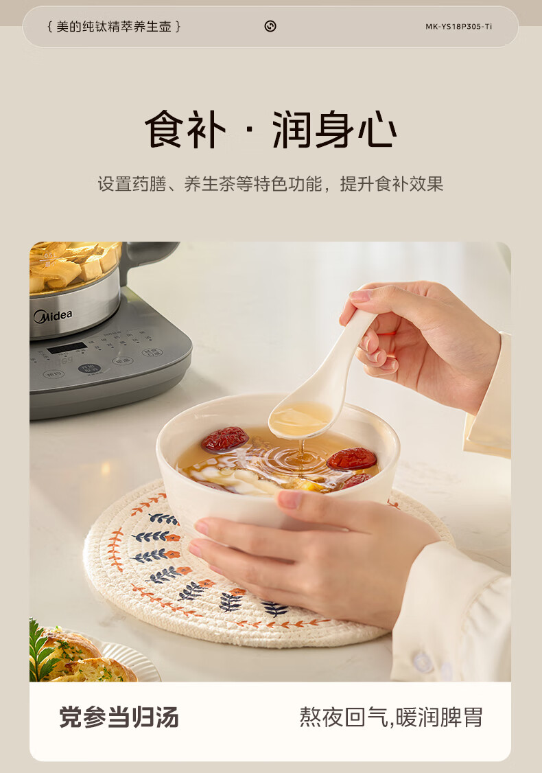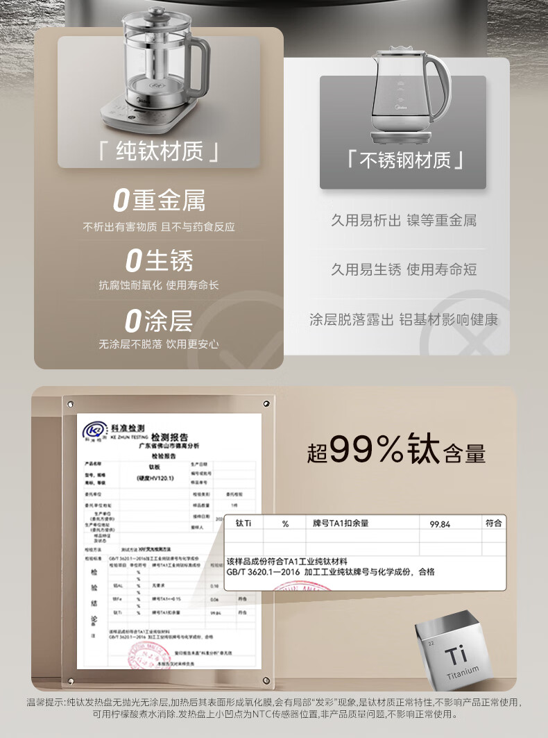 美的(Midea)纯钛养生壶 1.8L全自动大容量煮茶器烧水壶 纯钛茶篮 家用电热水壶花茶壶 恒温煮茶壶YS18P305-Ti