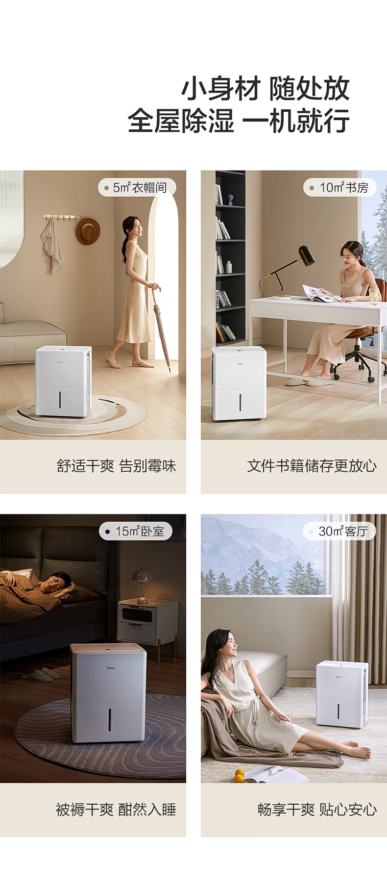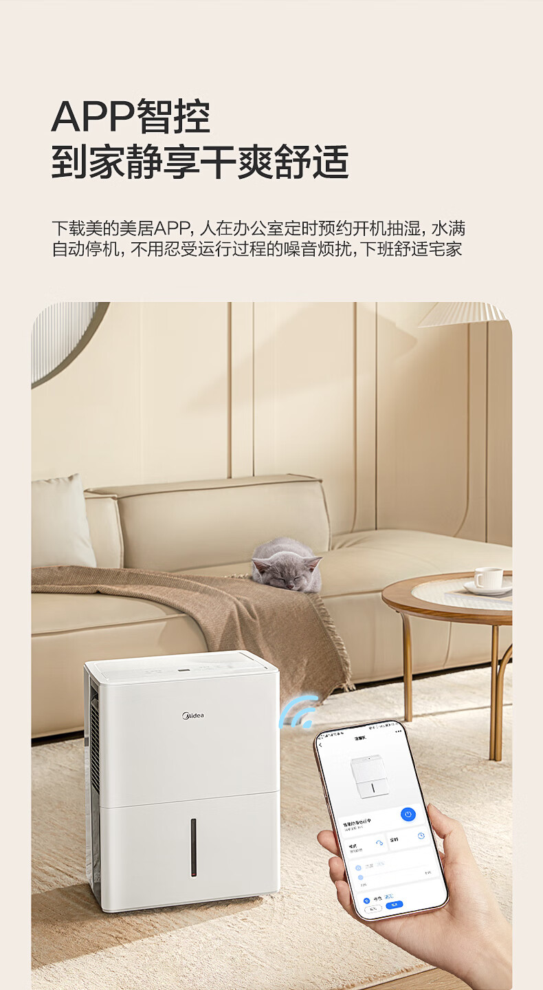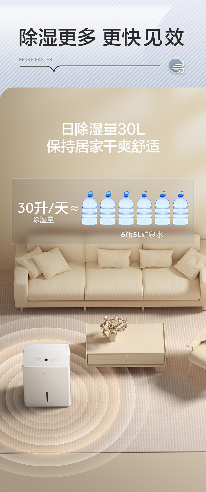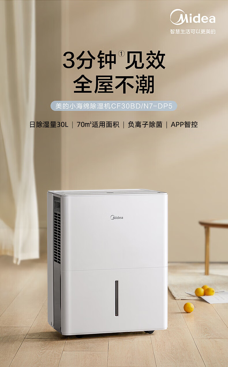 美的(Midea)除湿机/抽湿机 小海绵除湿机/除湿量30升/天 家用轻音App智控 地下室大功率除湿器CF30BD/N7-DP5