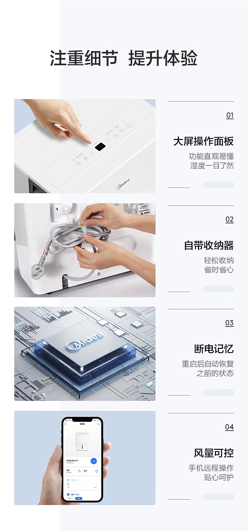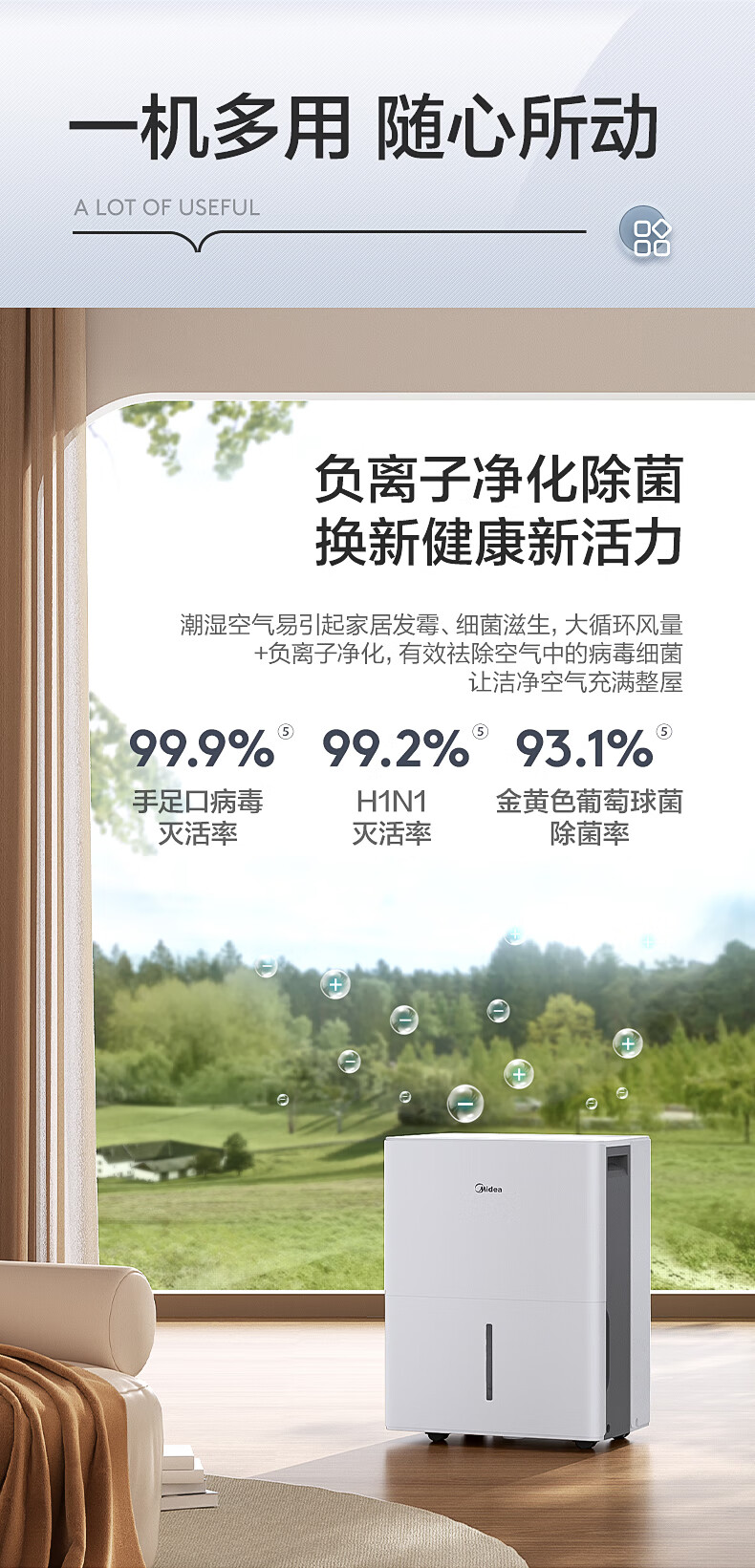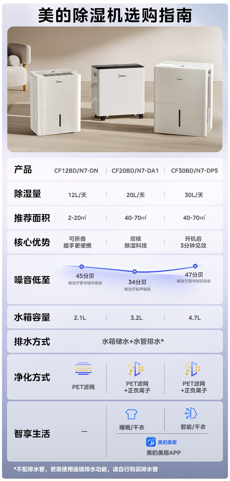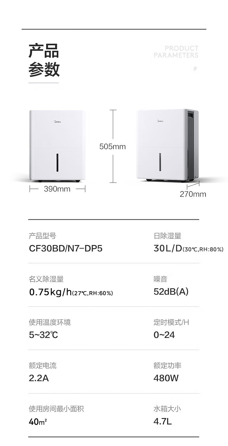 美的(Midea)除湿机/抽湿机 小海绵除湿机/除湿量30升/天 家用轻音App智控 地下室大功率除湿器CF30BD/N7-DP5