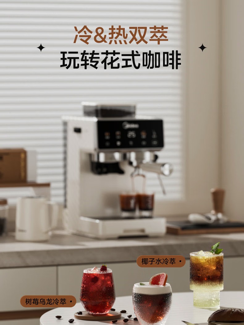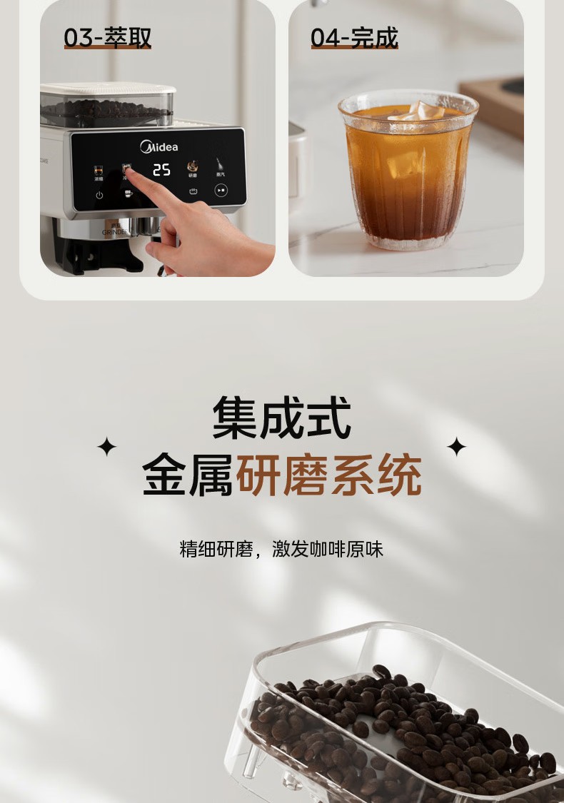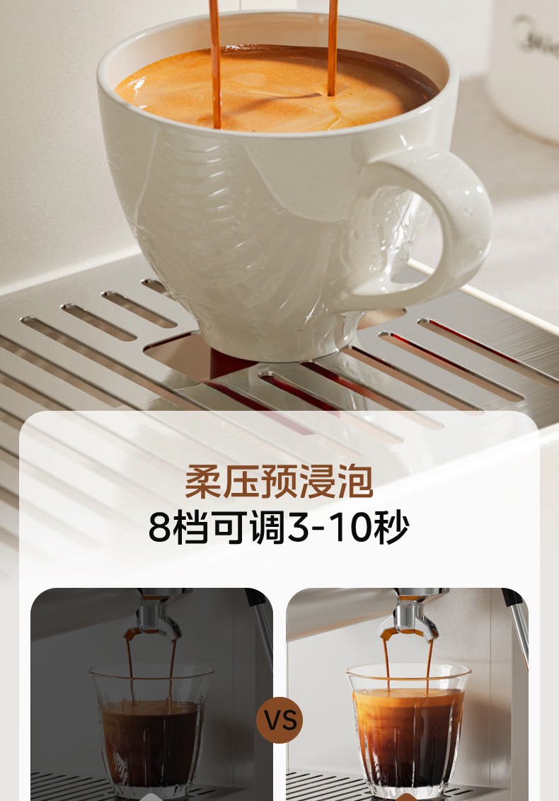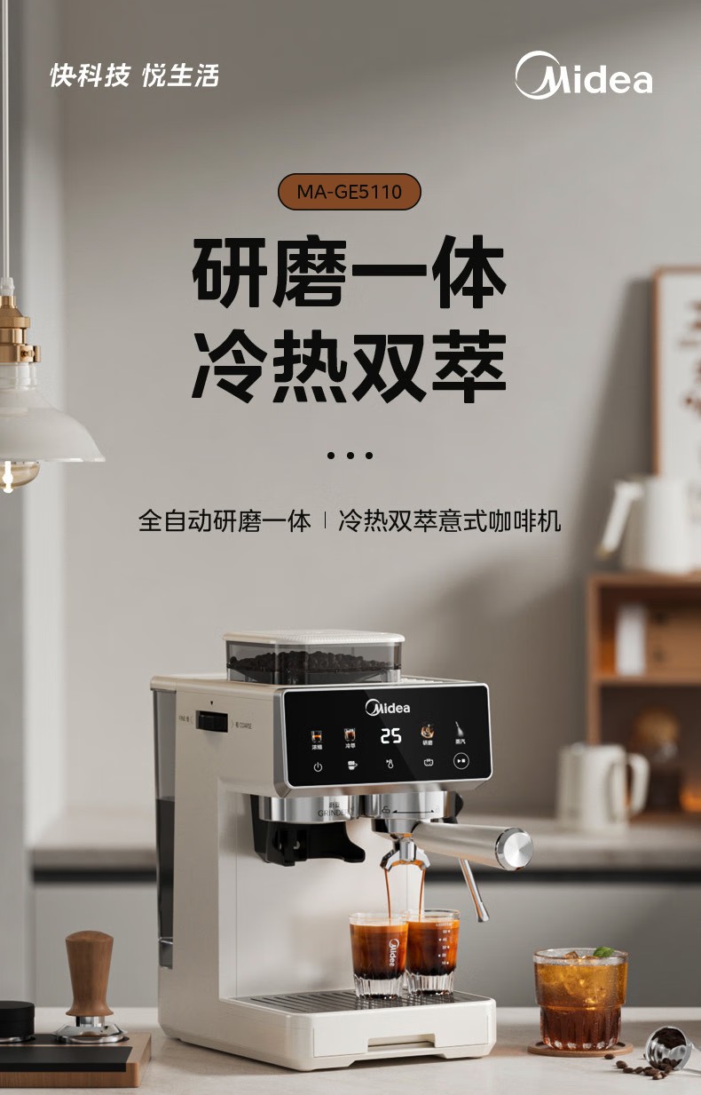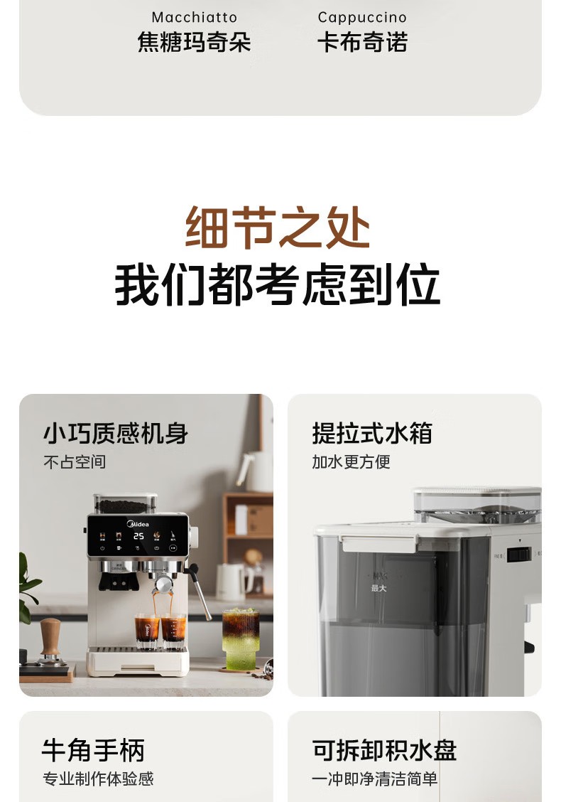 美的(Midea)半自动咖啡机家用意式研磨一体机全自动咖啡机MA-GE5110 产品尺寸:长285mm;宽205mm;高360mm