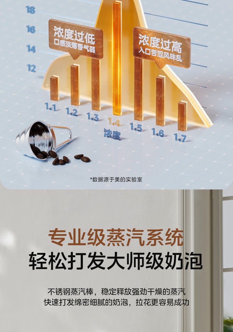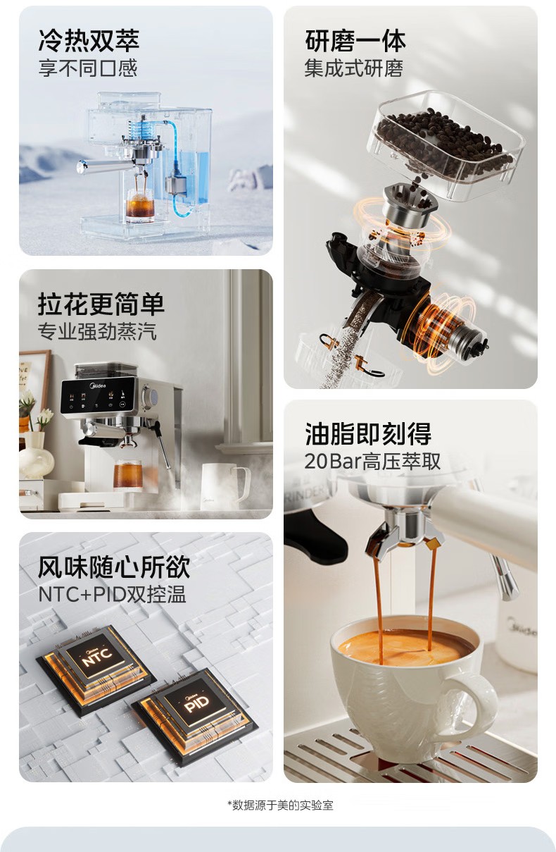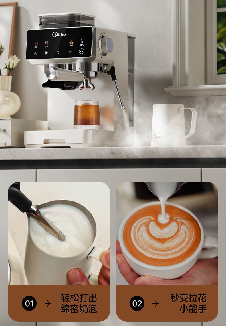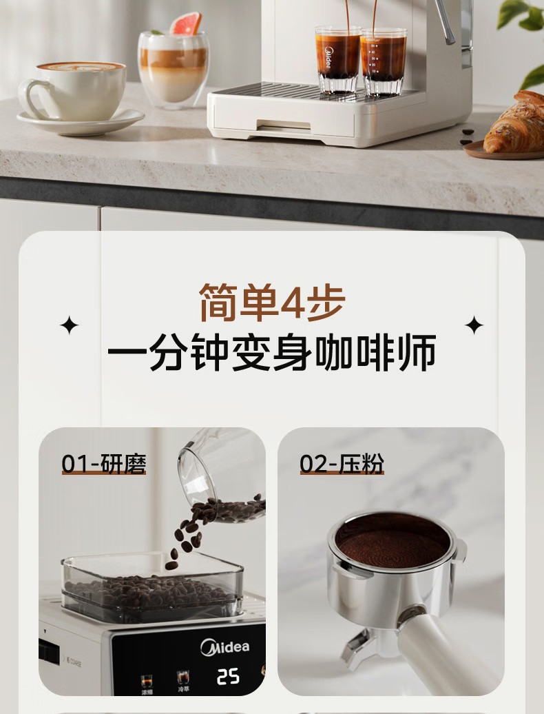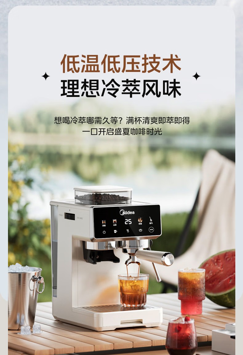 美的(Midea)半自动咖啡机家用意式研磨一体机全自动咖啡机MA-GE5110 产品尺寸:长285mm;宽205mm;高360mm