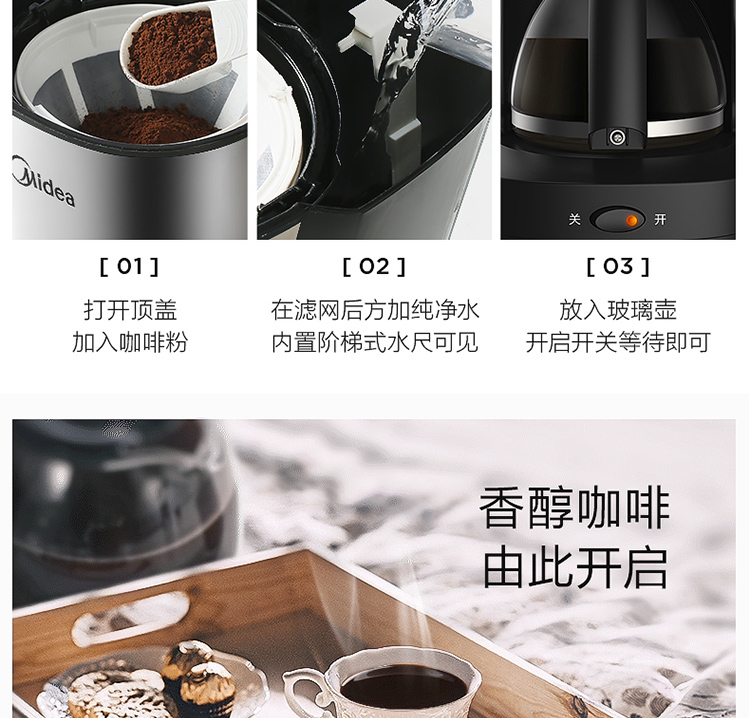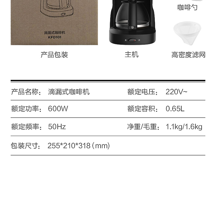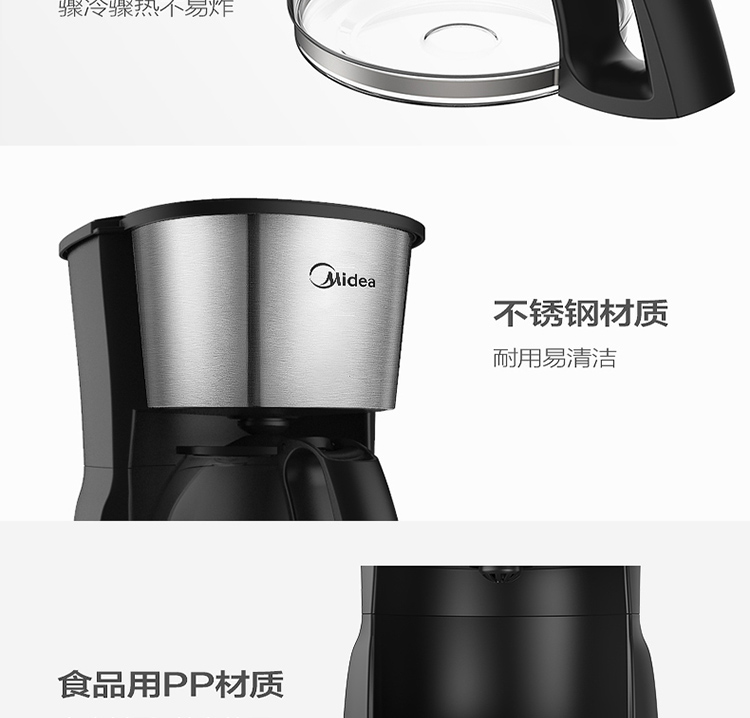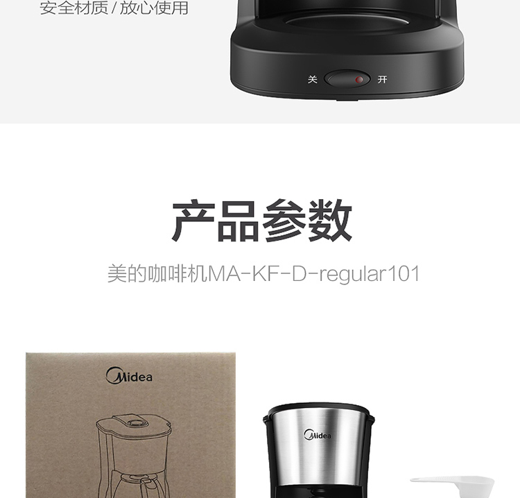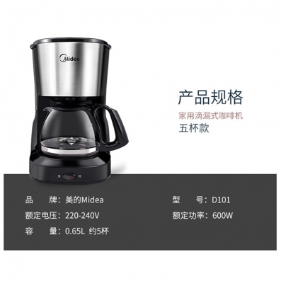 美的(Midea)滴滤美式咖啡机半自动家用滴漏咖啡壶650ml容量恒热萃取小型水壶泡茶杯煮茶器茶壶KFD101