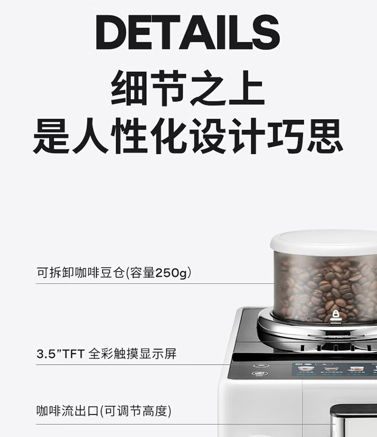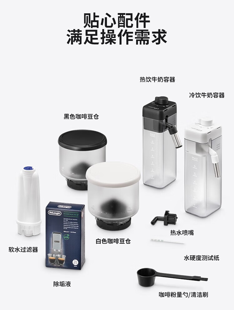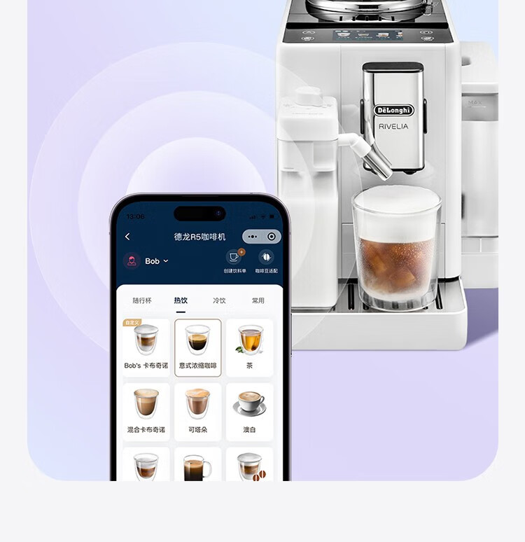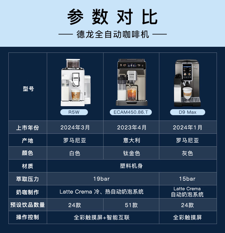德龙(Delonghi)【中秋礼品】咖啡机 意式全自动咖啡机 小型家用欧洲进口智能互联全彩触屏可拆卸豆仓R5 W 白月光
