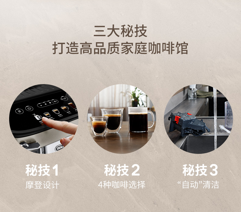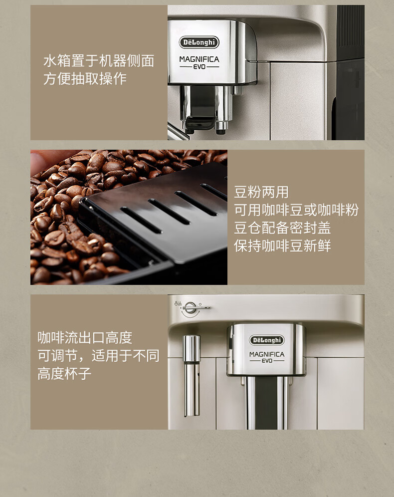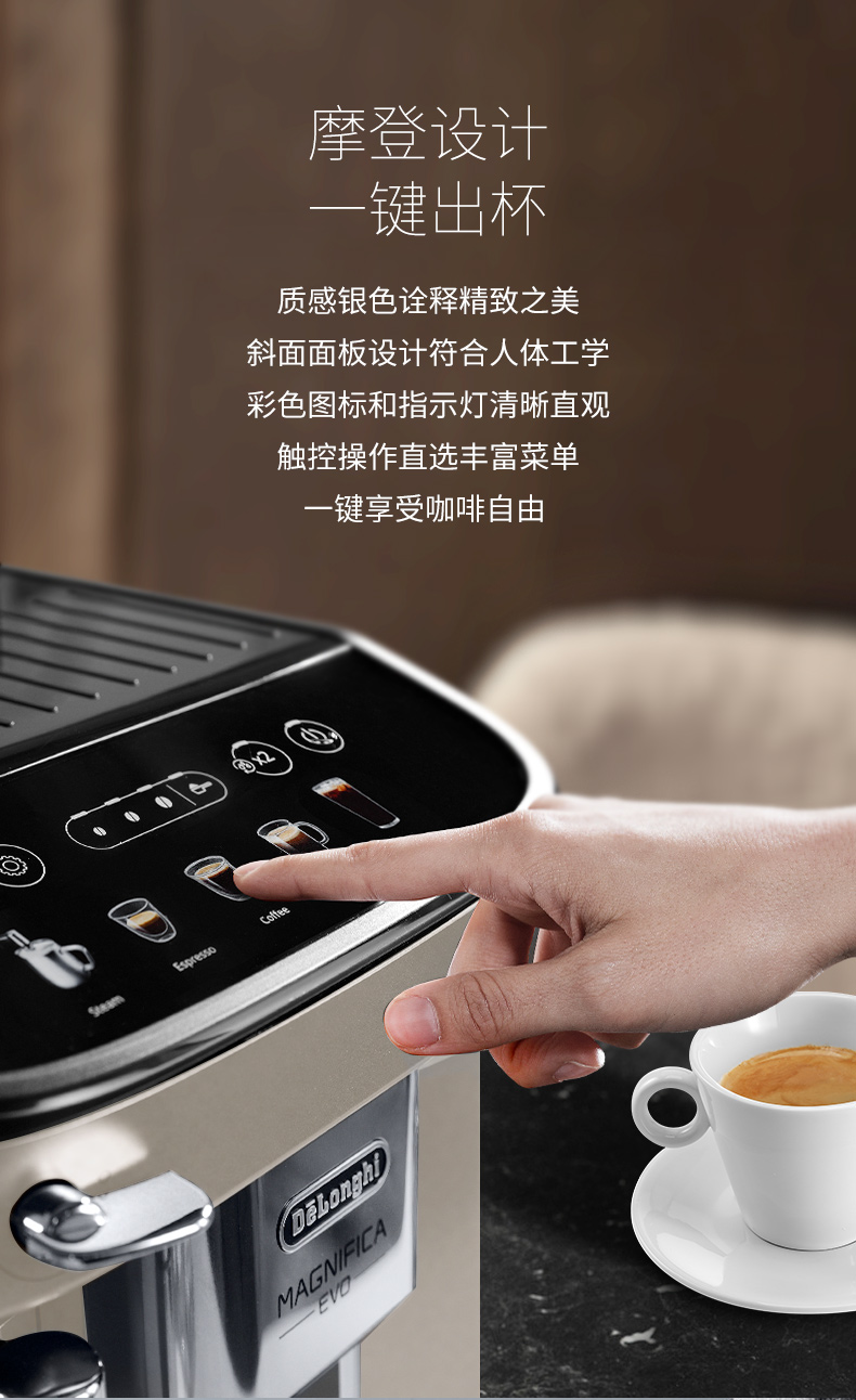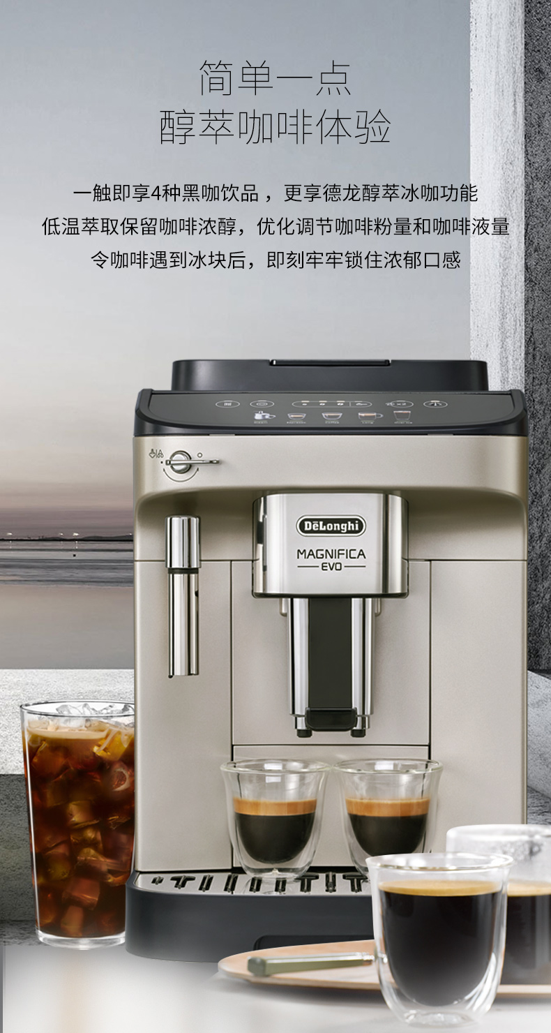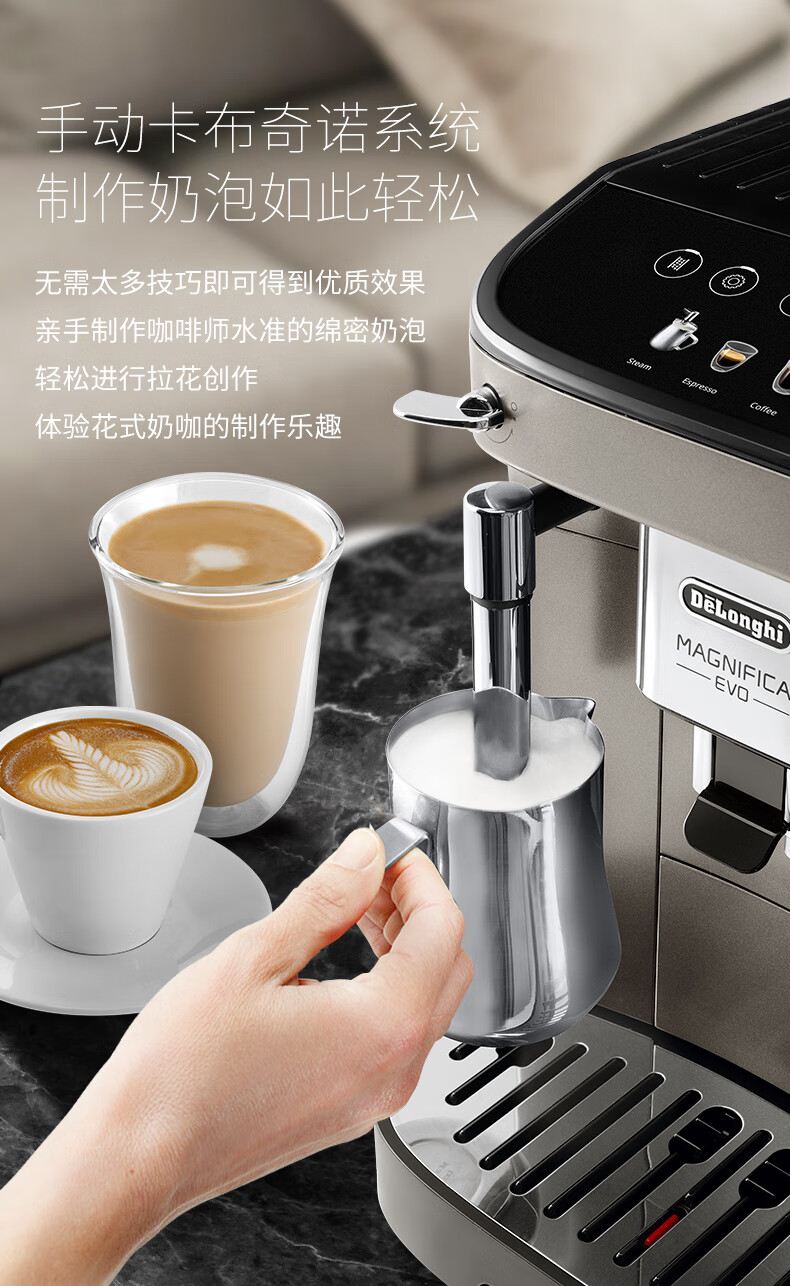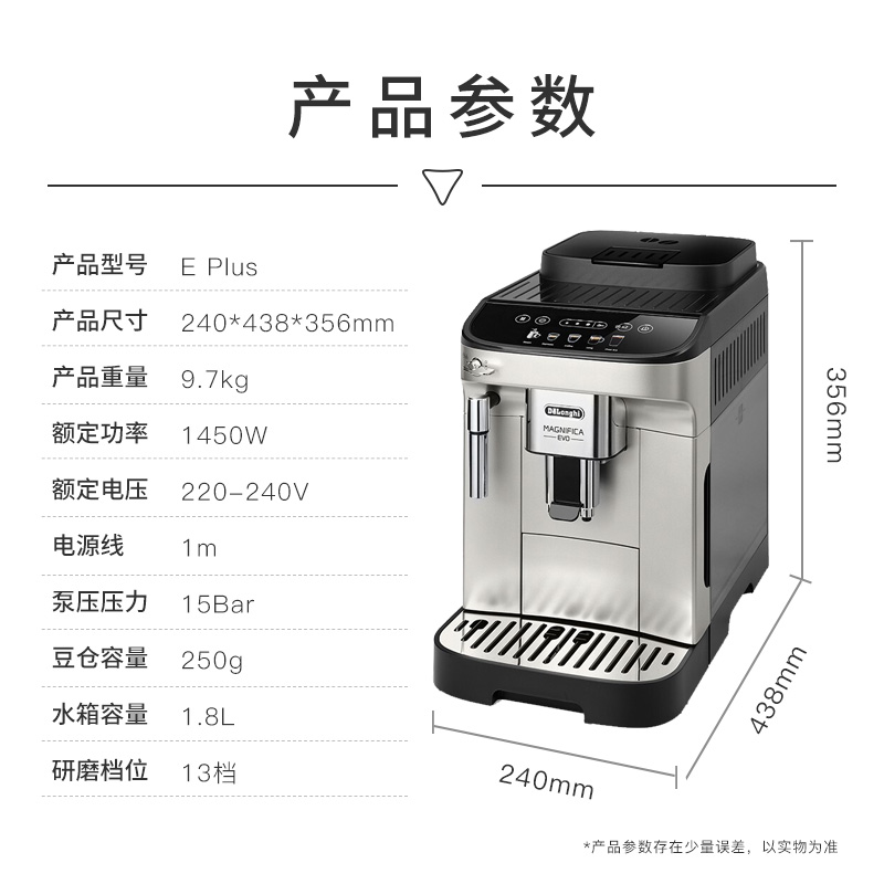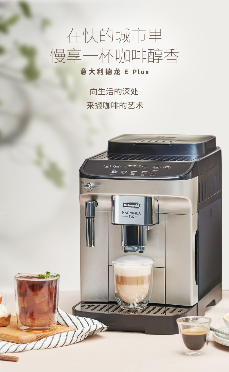 德龙(Delonghi)咖啡机 家用全自动咖啡机 15Bar意式美式现磨手动打奶泡 欧洲进口理想 E Plus