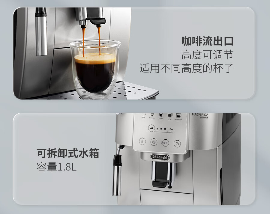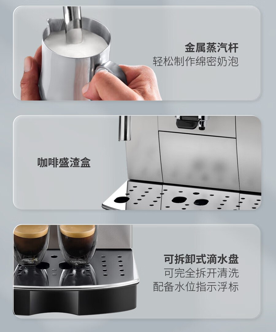 德龙(Delonghi)【中秋礼品】咖啡机 家用全自动咖啡机 欧洲进口意式现磨理想手动打奶泡 S3 Plus