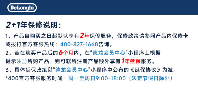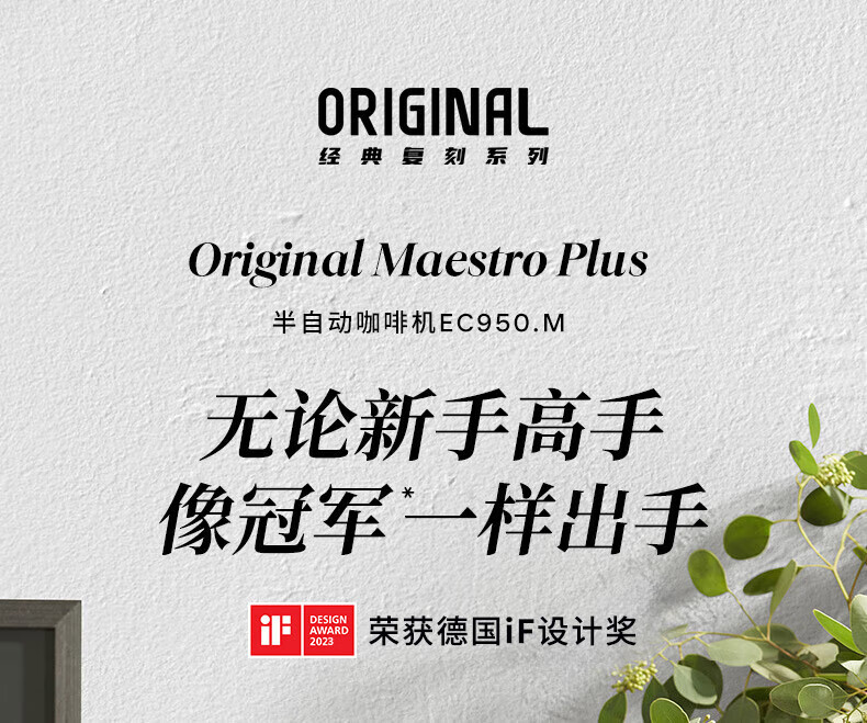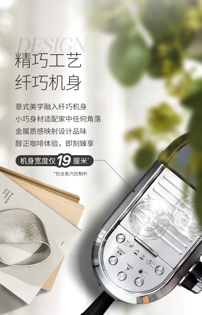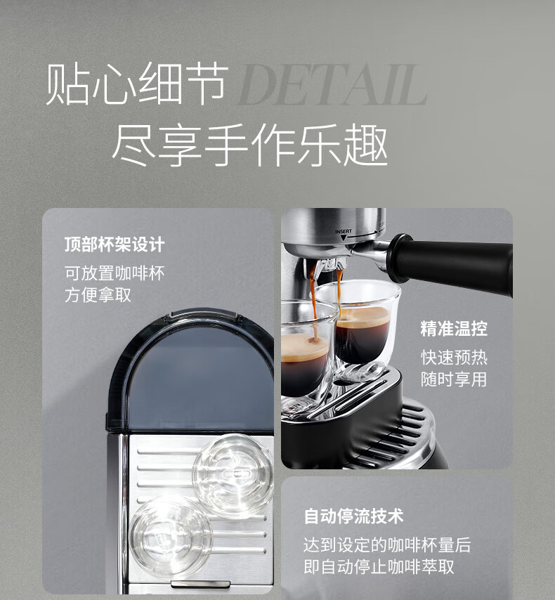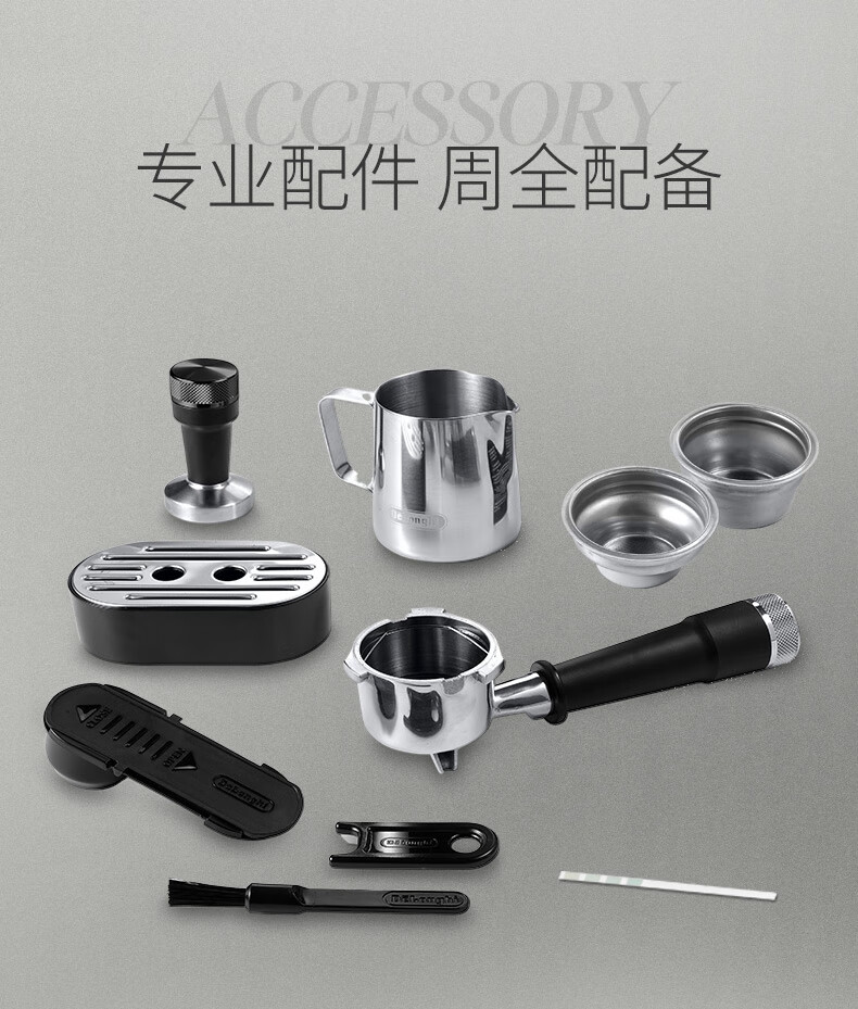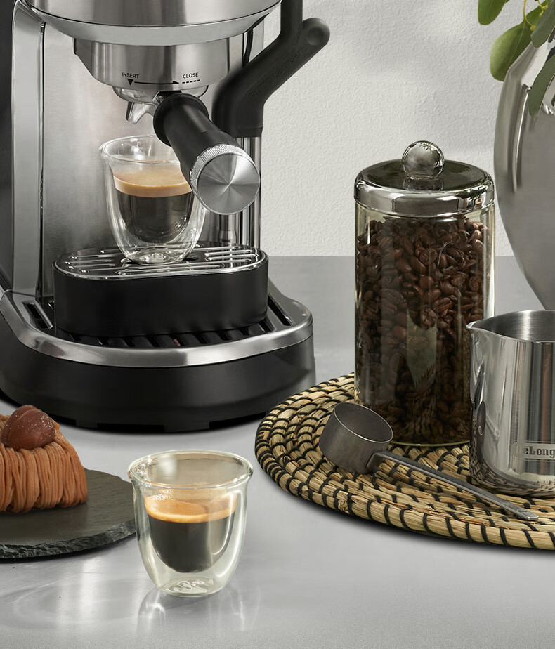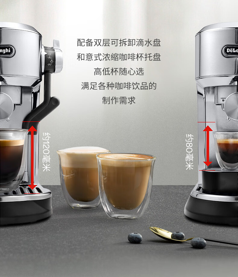 德龙(Delonghi)咖啡机 半自动咖啡机 意式浓缩 家用泵压式 纤巧机身 手自一体奶泡系统 EC950.M 银色