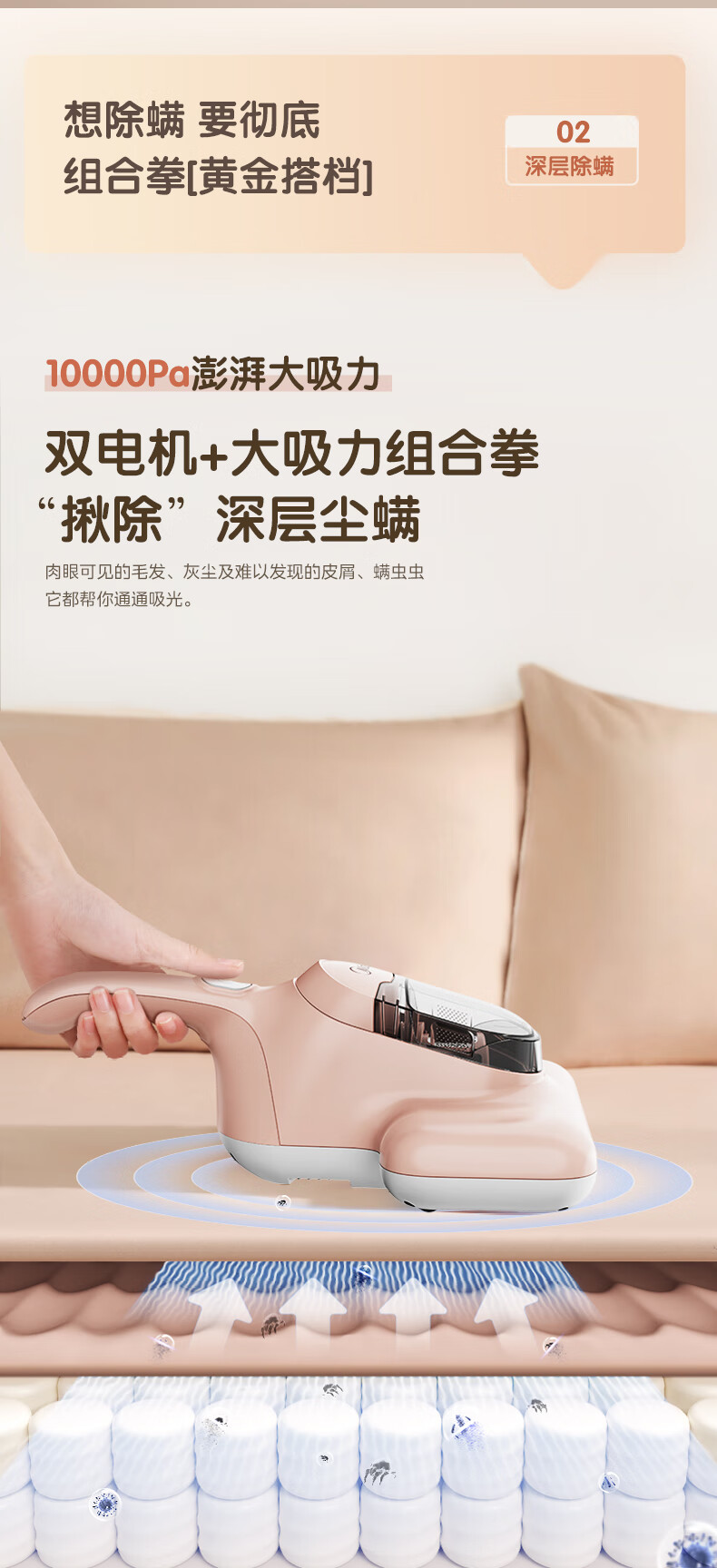 美的(Midea)除螨仪 家用床上手持吸尘除螨一体机 紫外线杀菌去螨虫 床上吸尘器 BC1小旋风