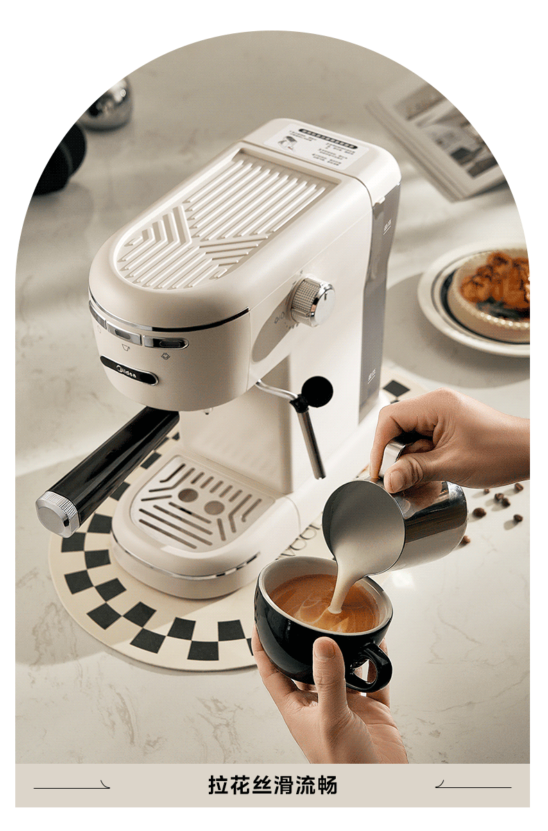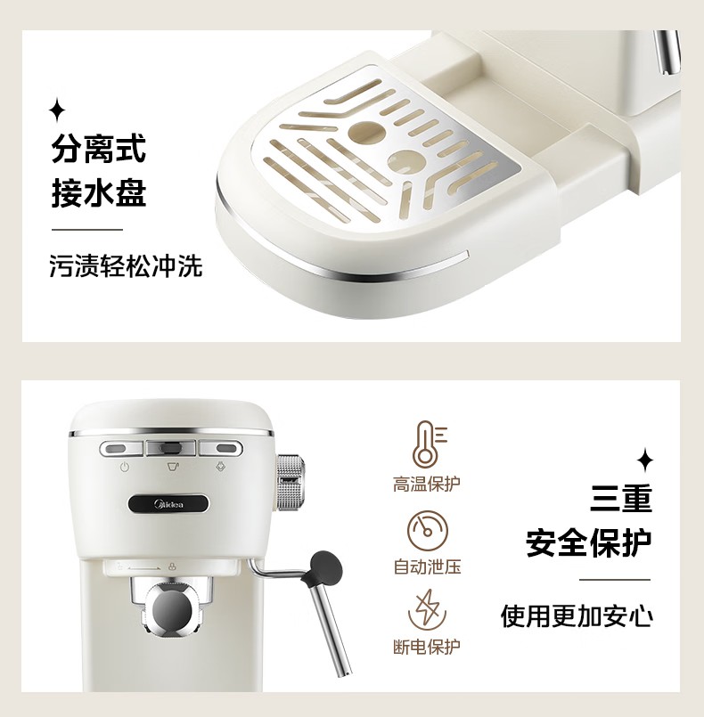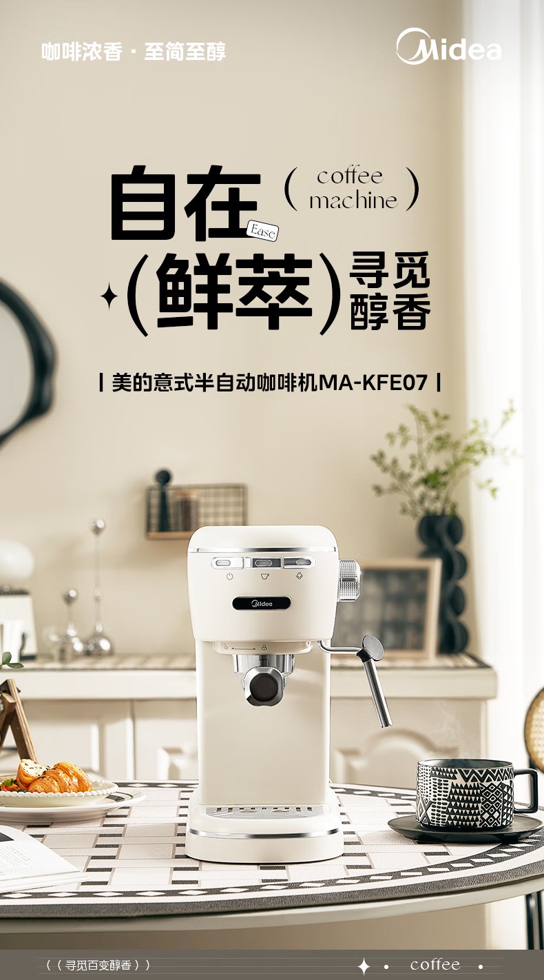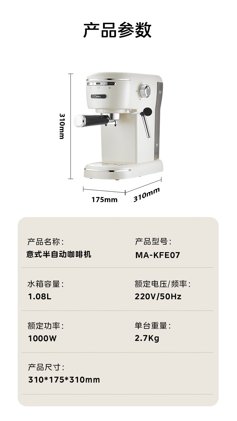 美的(Midea)【中秋礼品】半自动咖啡机奶泡机家用小型意式美式咖啡萃取机打奶泡一体花式奶咖MA-KFE07