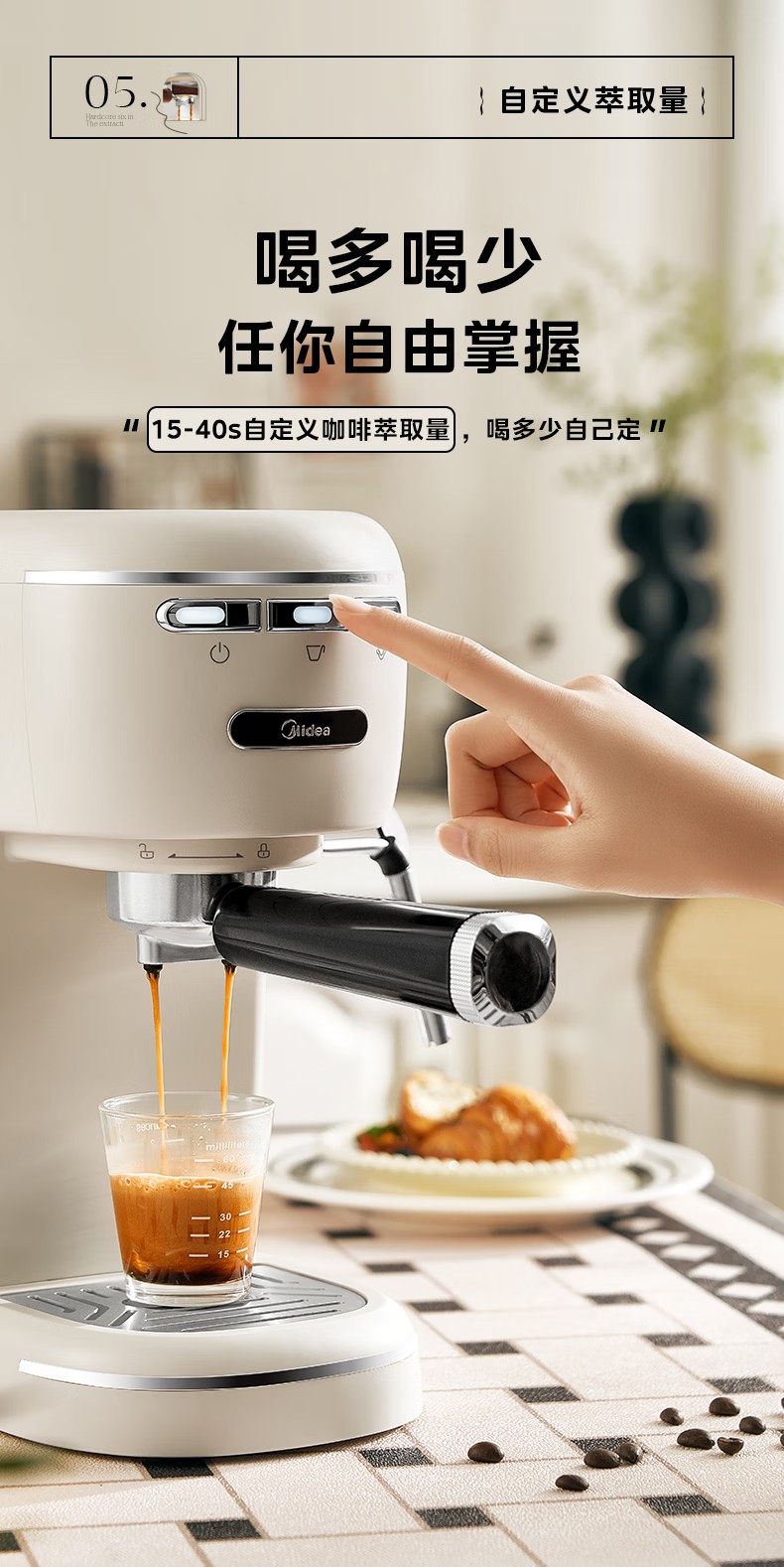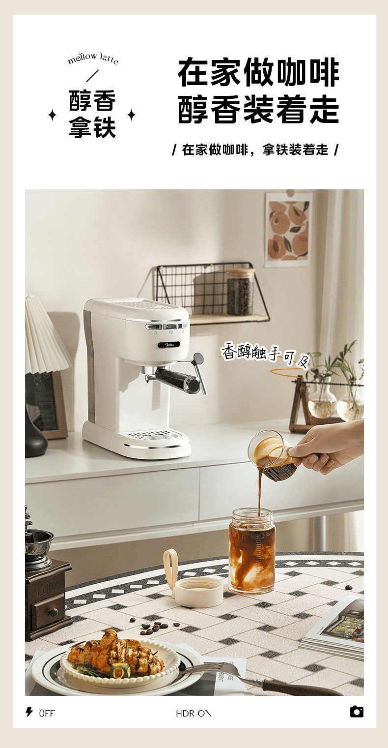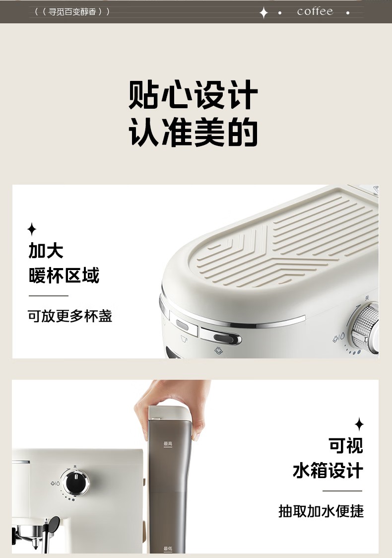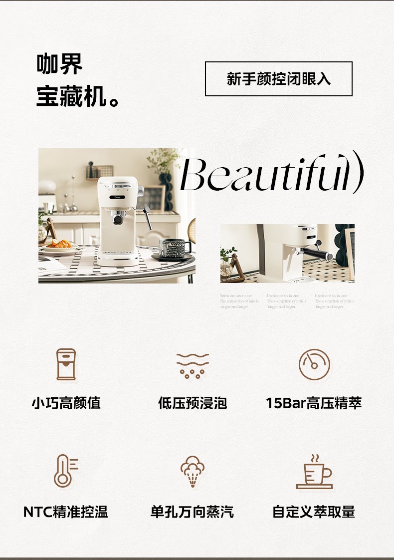 美的(Midea)【中秋礼品】半自动咖啡机奶泡机家用小型意式美式咖啡萃取机打奶泡一体花式奶咖MA-KFE07