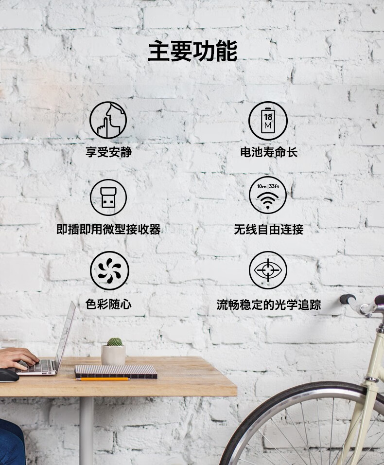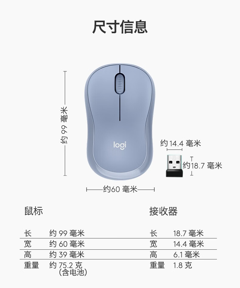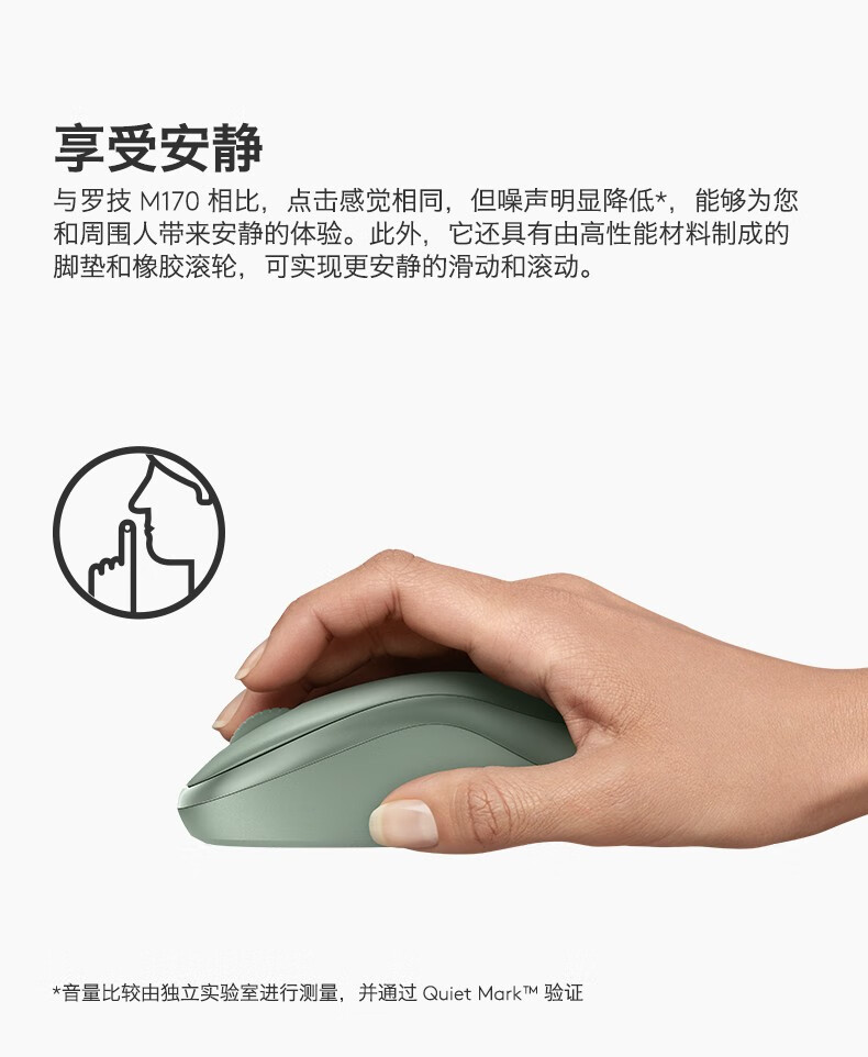 罗技(Logitech)M221 轻音鼠标 无线鼠标 办公鼠标 对称鼠标 带无线微型接收器 米白色 供电方式:干电池 鼠标重量:61-79g