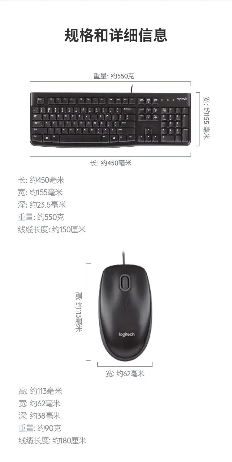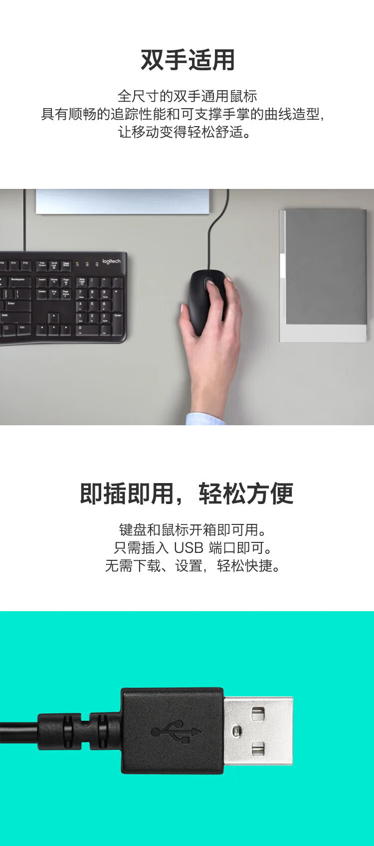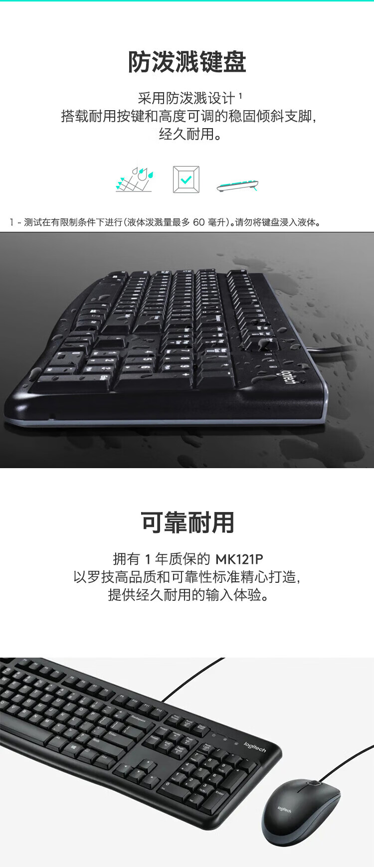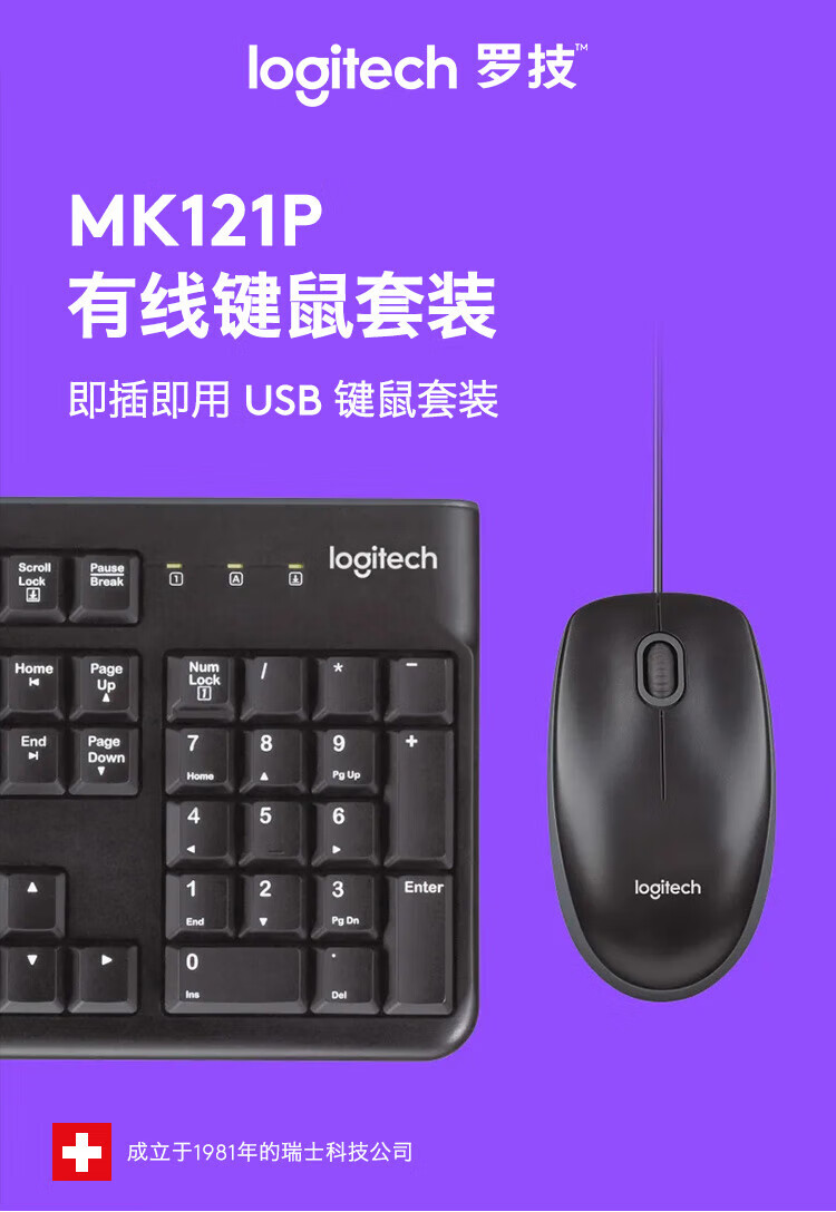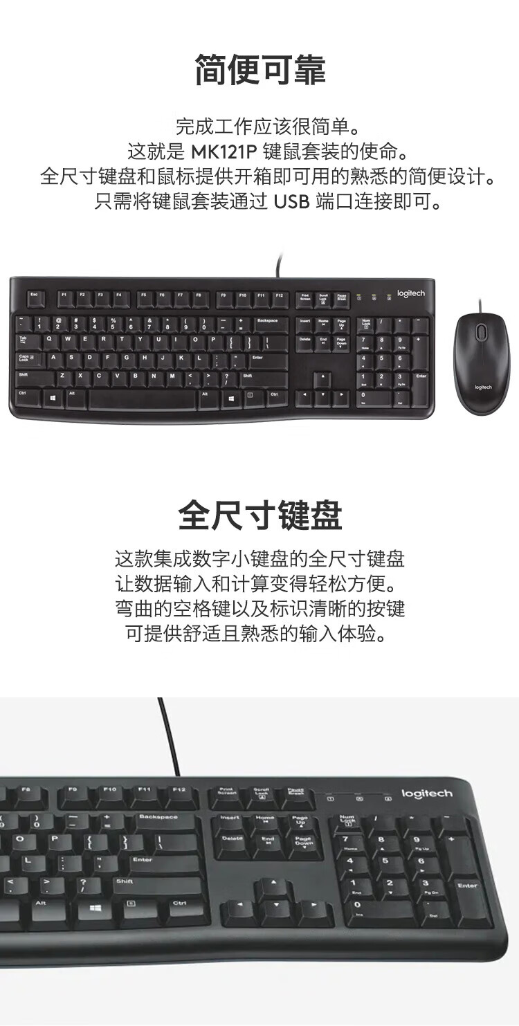 罗技(Logitech)MK121P(MK120)有线键鼠套装 办公键鼠电脑笔记本办公有线USB鼠标键盘套装