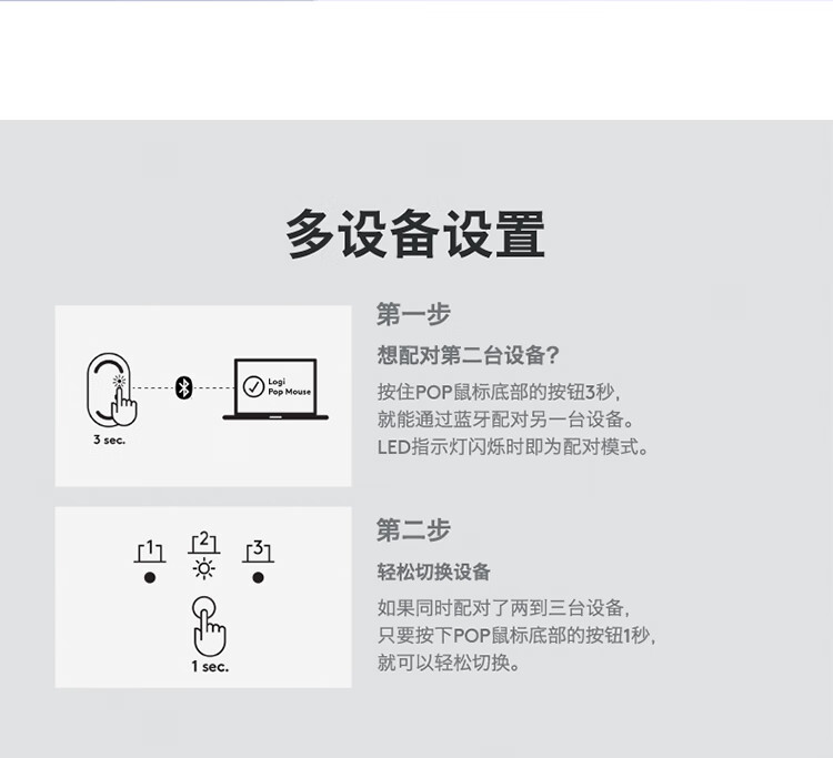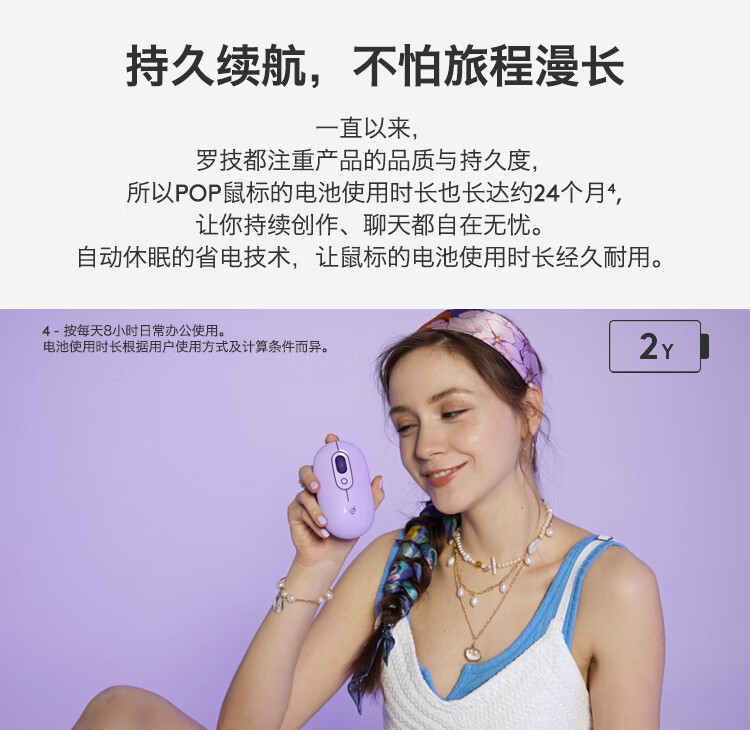 罗技(Logitech)时尚系列 POP MOUSE无线鼠标 蓝牙鼠标 办公鼠标 丁香紫 供电方式:干电池 鼠标重量:80-99g