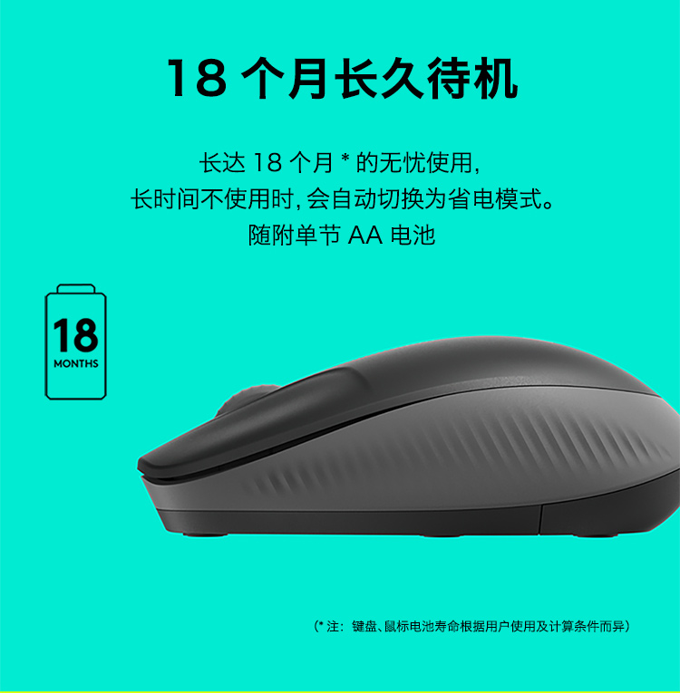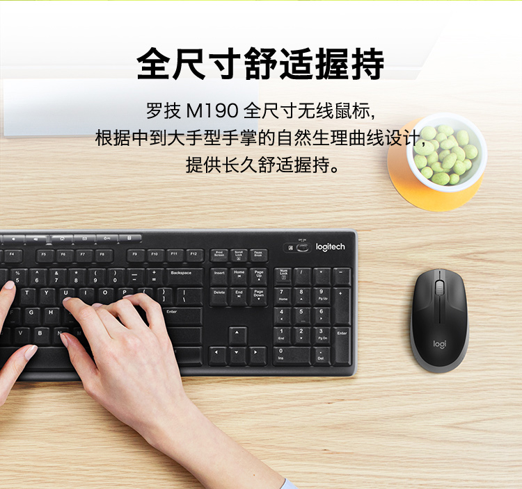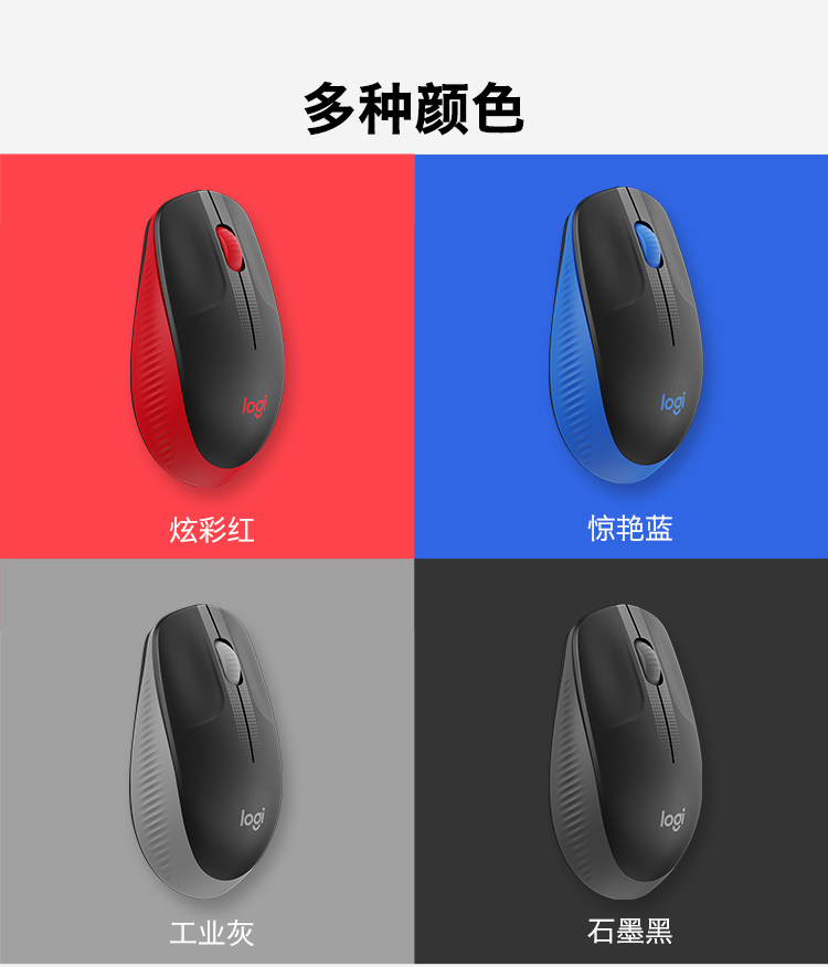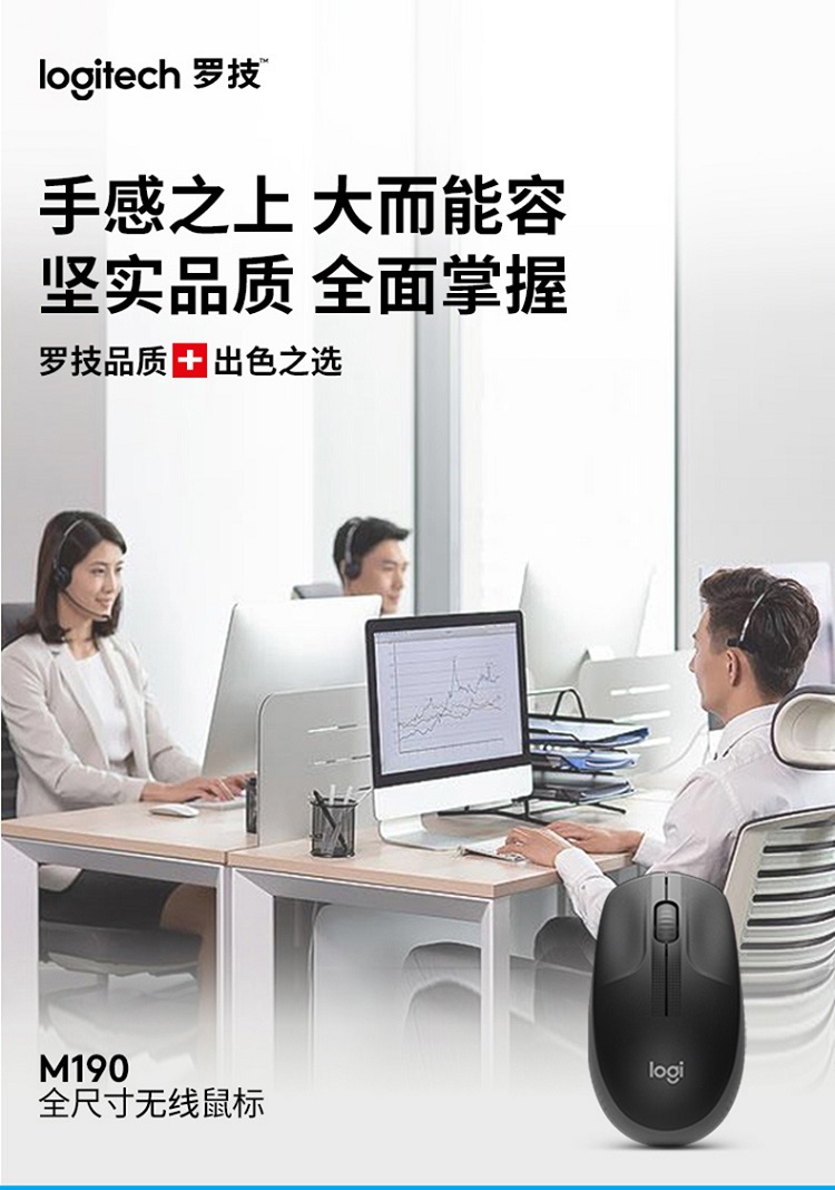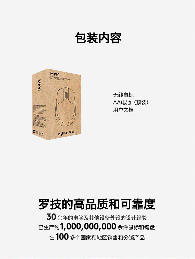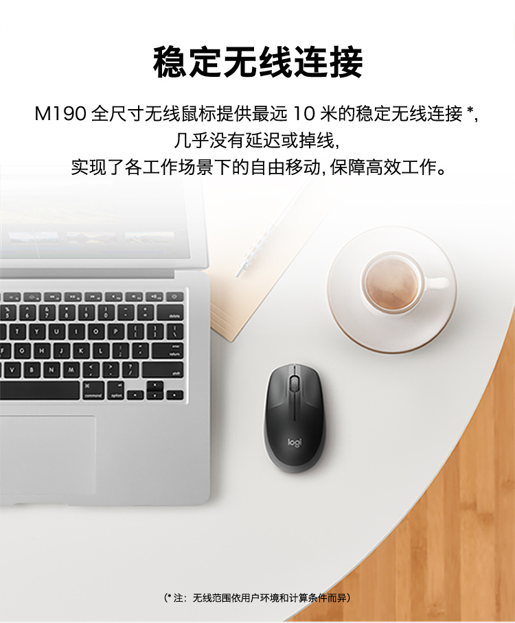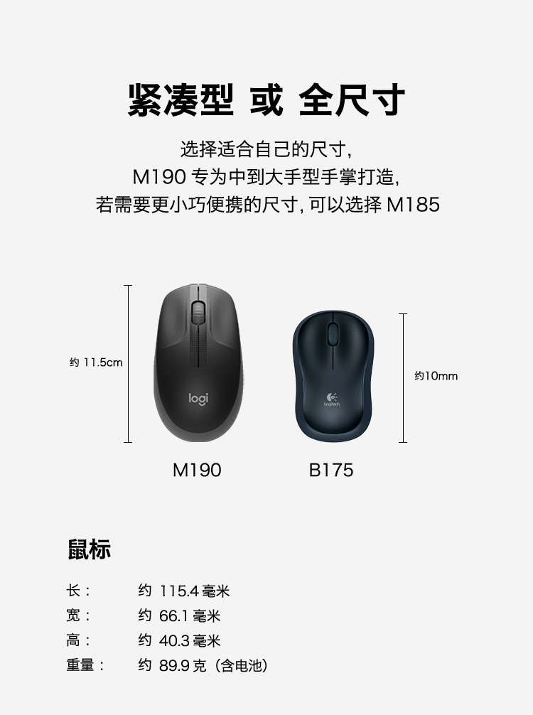 罗技(Logitech)M190 无线鼠标 笔记本电脑商务办公家用全尺寸光电鼠标 碳黑色(单位:个)