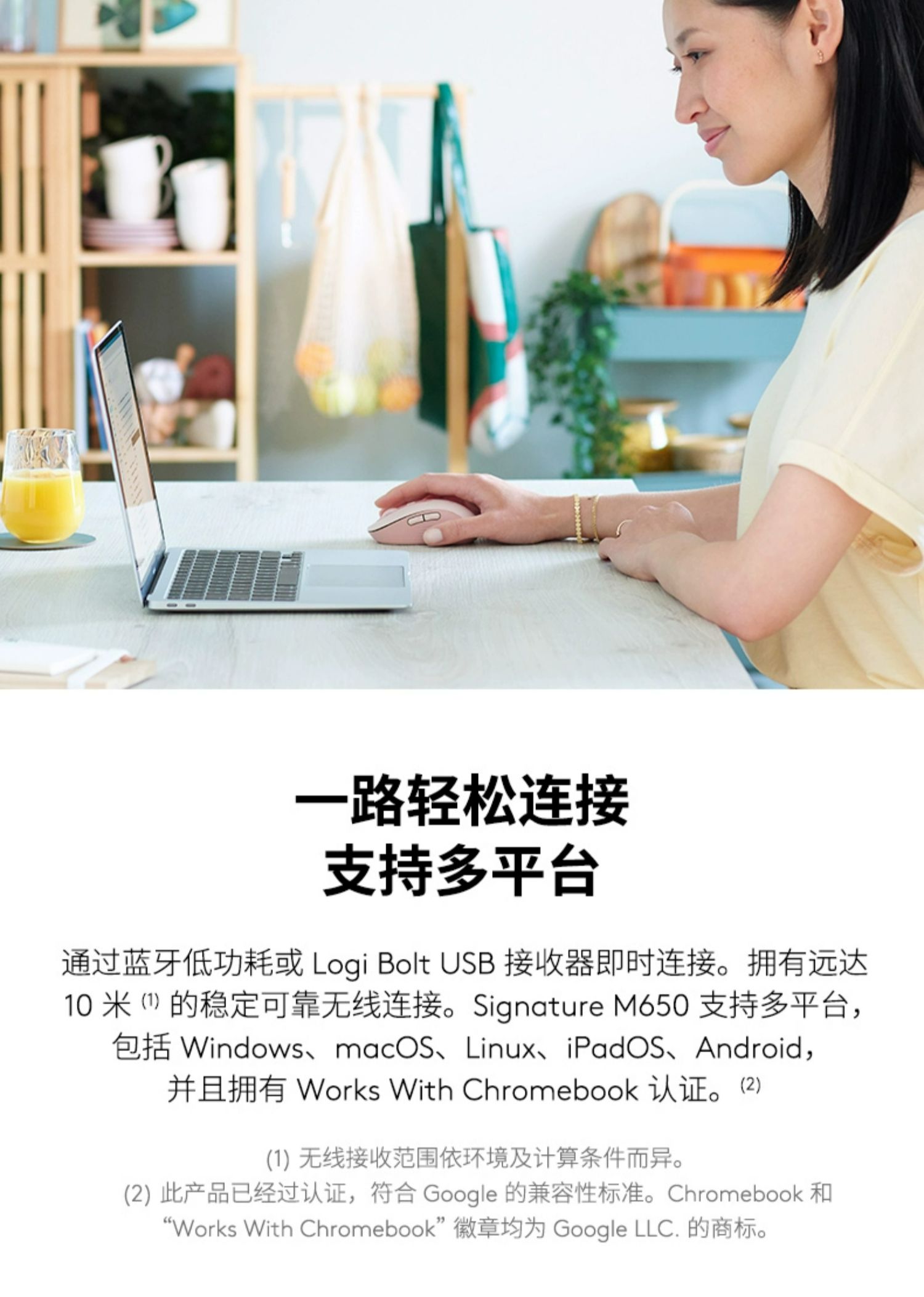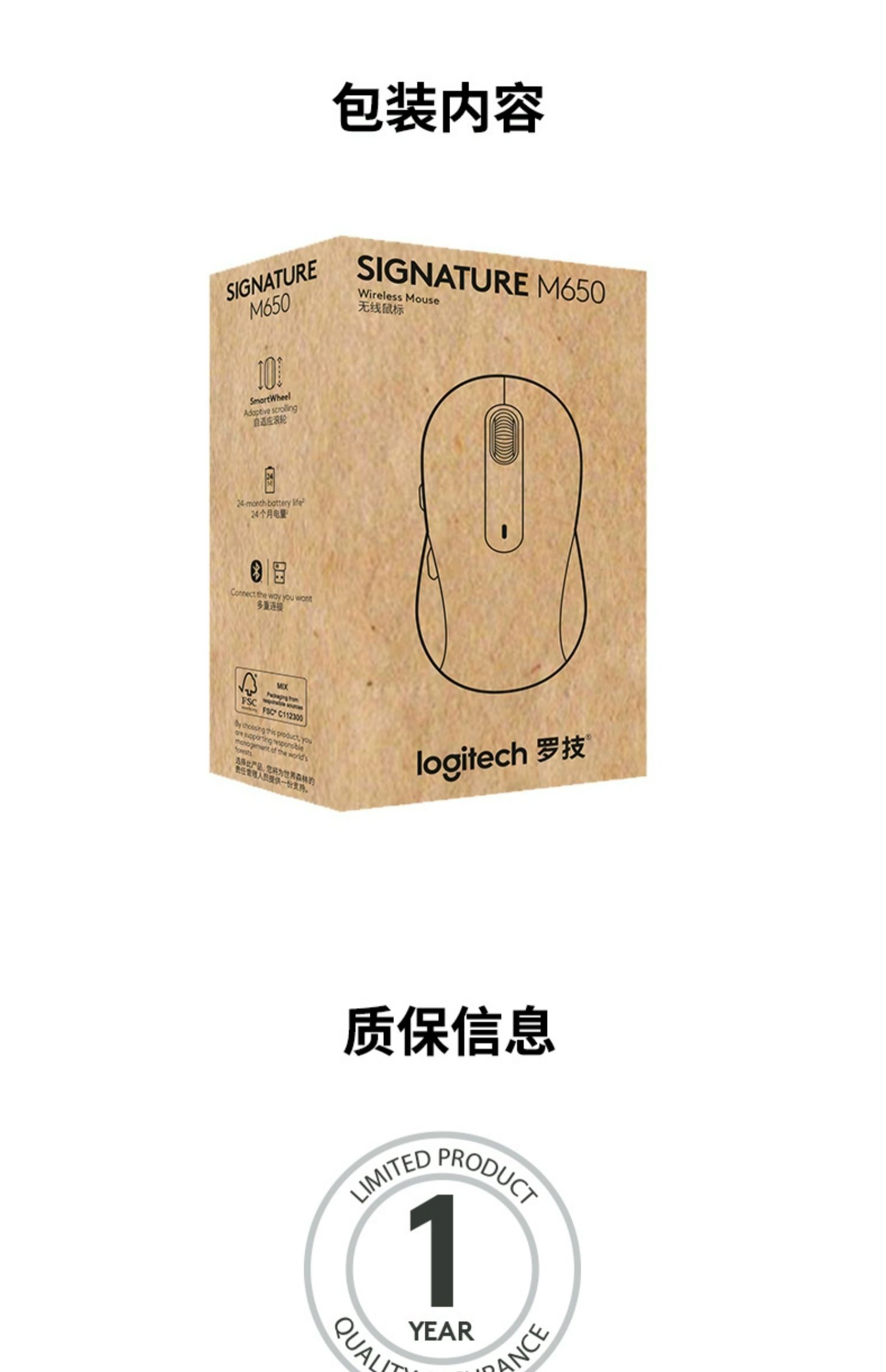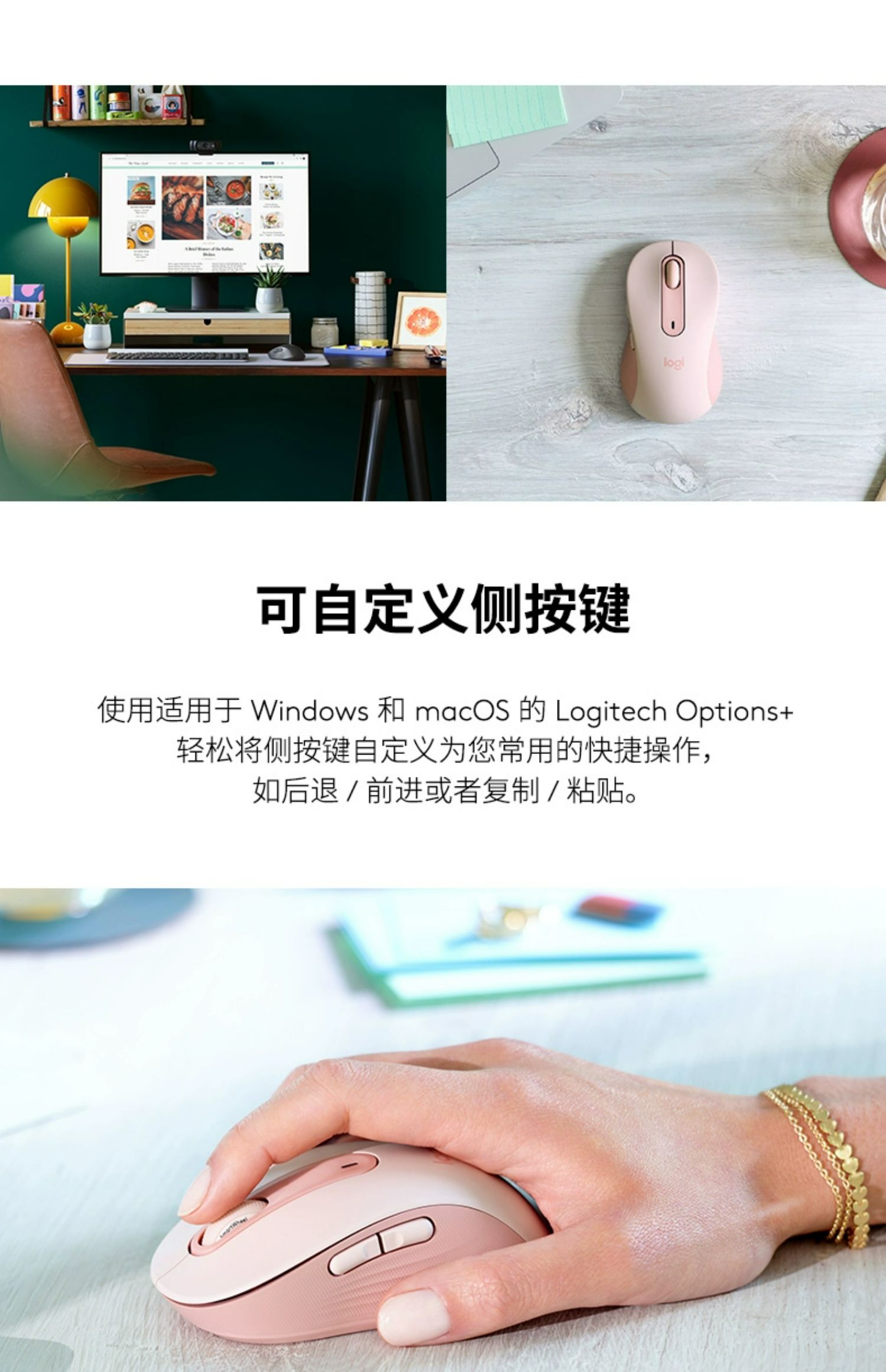 罗技(Logitech)优选系列M650无线蓝牙鼠标 办公蓝牙静音鼠标Mac苹果ipad鼠标人体工学双模鼠标大小手可选男女通用 M650中小手 黑M