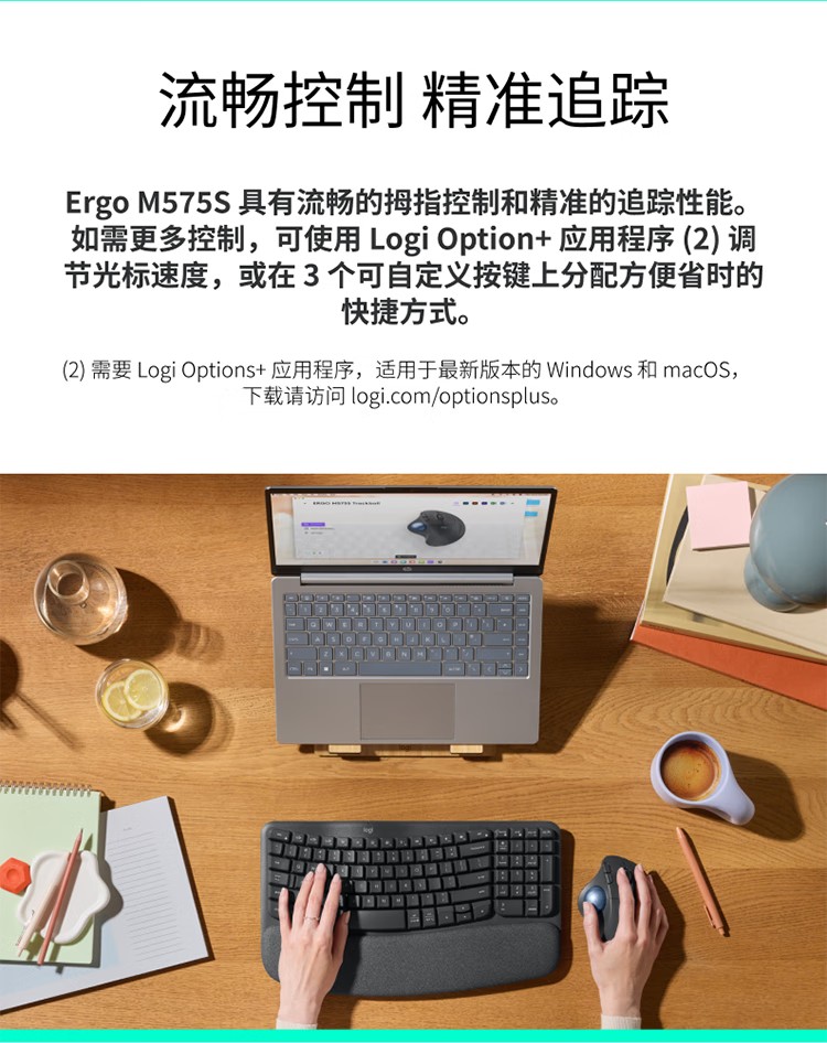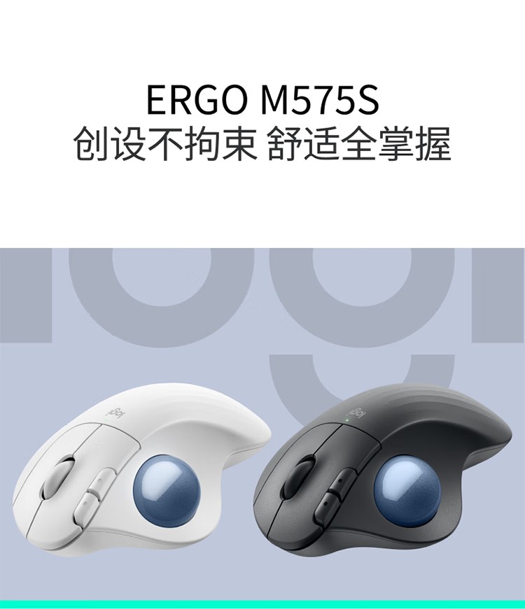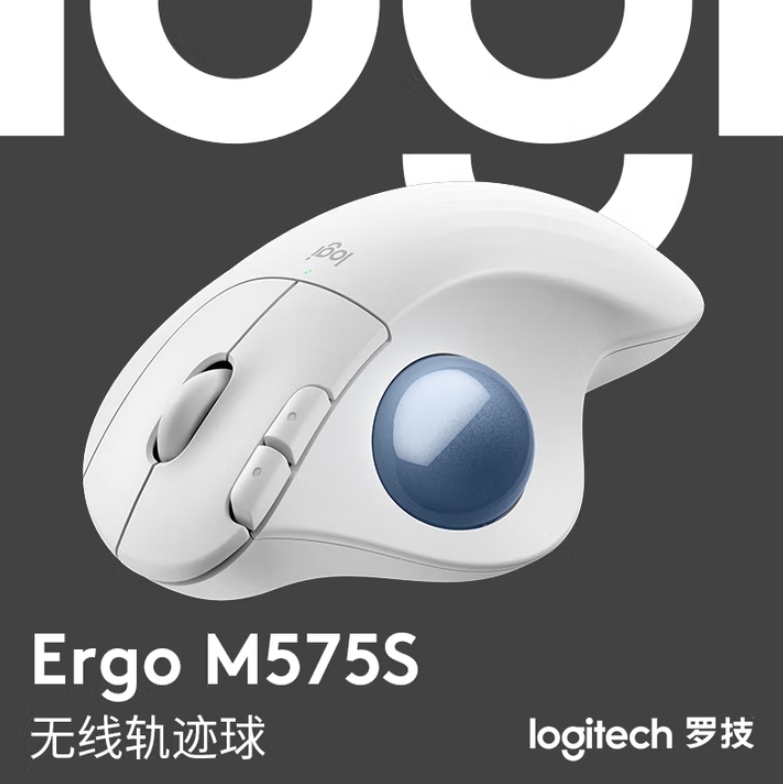 罗技(Logitech)ERGO M575 S无线蓝牙鼠标 无线轨迹球鼠标办公 人体工学鼠标双模 Mac笔记本电脑电池款USB家用鼠标 M575 S珍珠白(升级轻音)