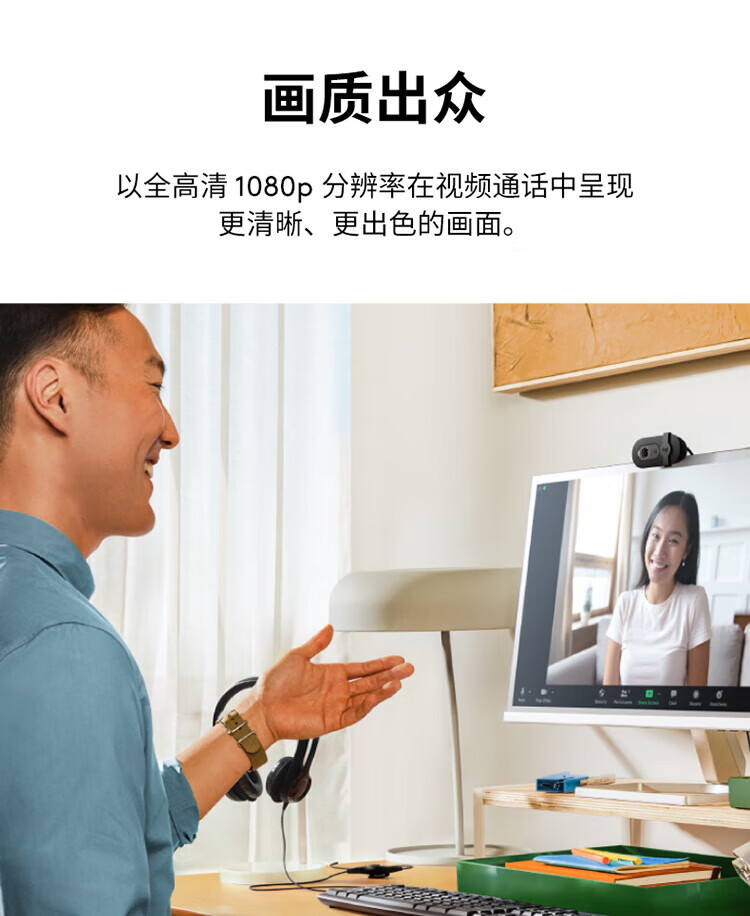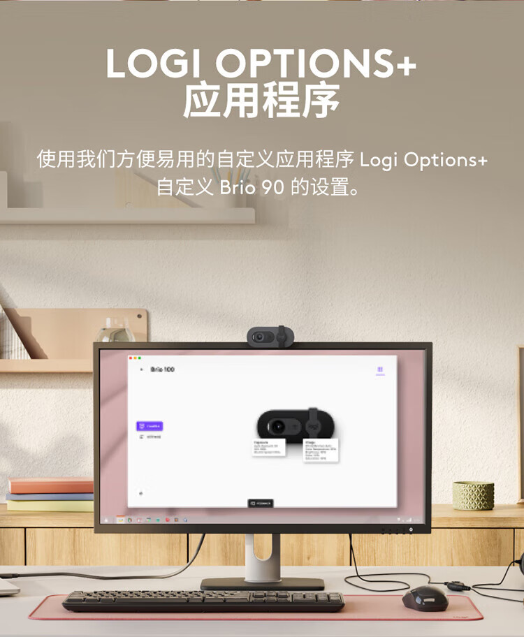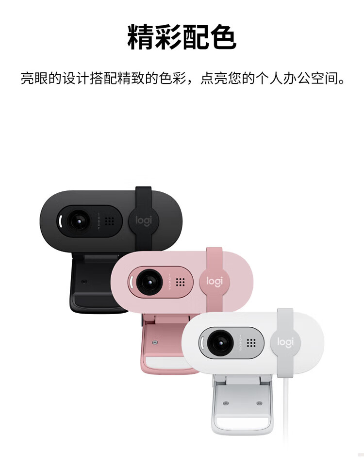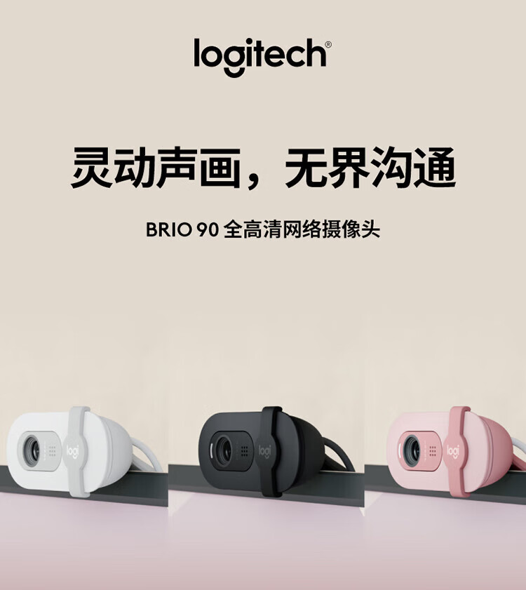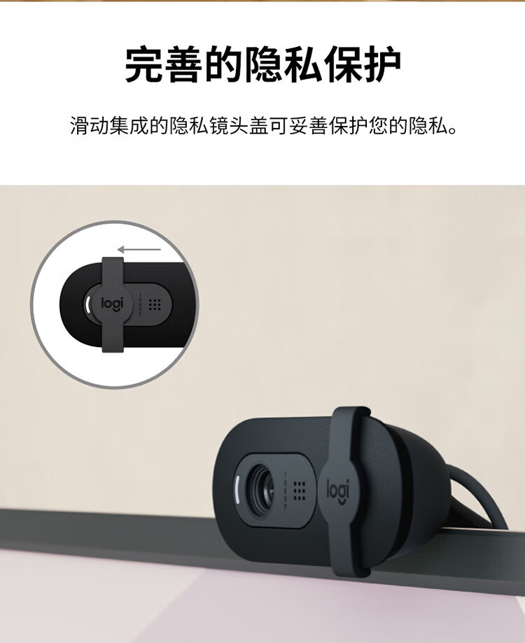 罗技(Logitech)Brio 90 全高清摄像头 视频会议网课摄像头 视频通话 电脑笔记本摄像头 带麦克风 石墨黑
