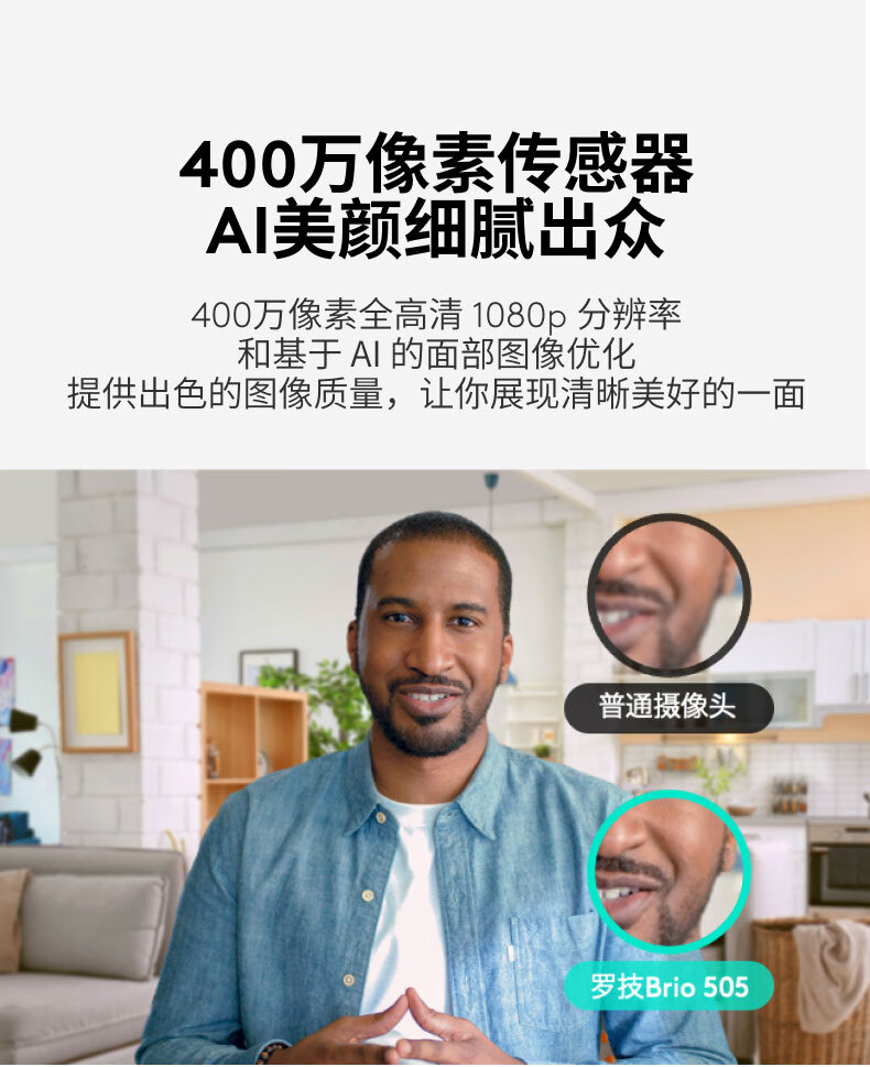罗技(Logitech)Brio 505直播摄像头 笔记本台式电脑高清网络摄像头视频通话会议网课外接Type-C 带麦克风隐私盖 1080P Brio505
