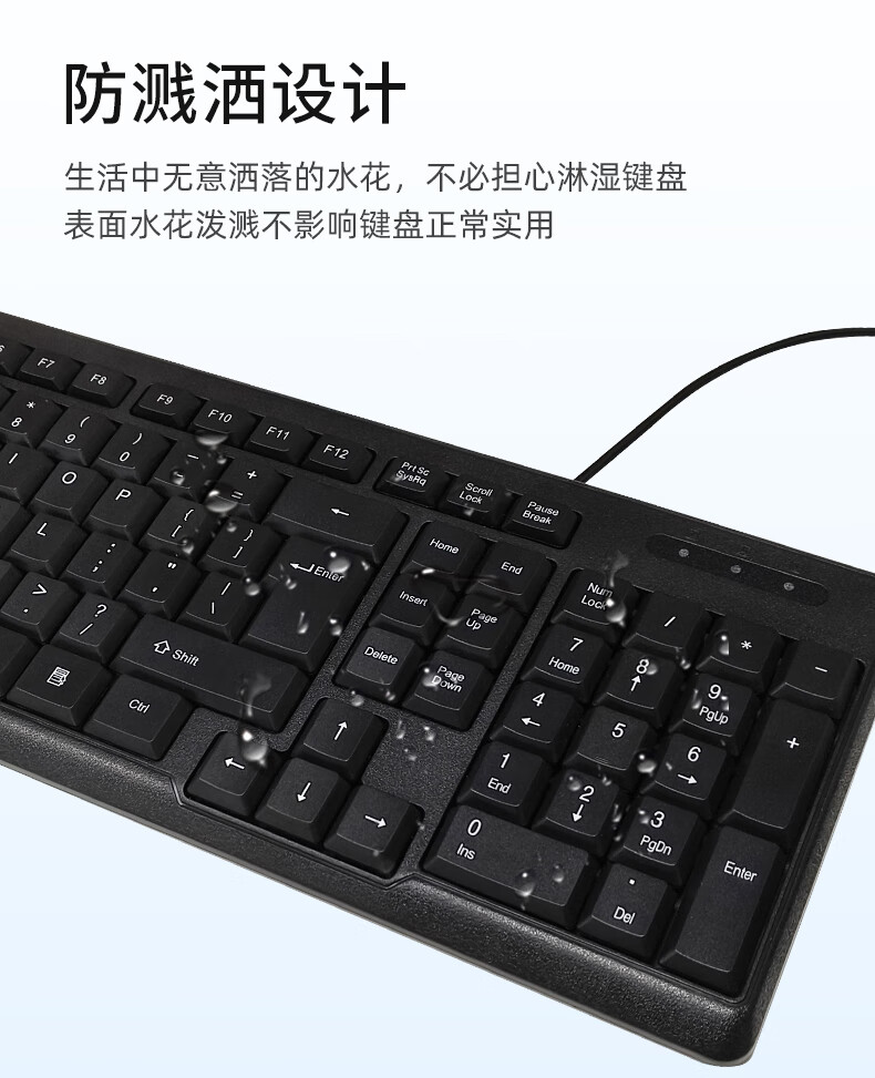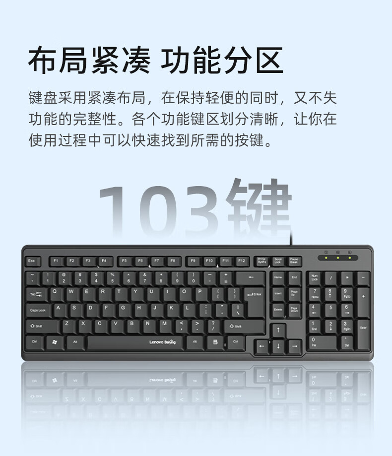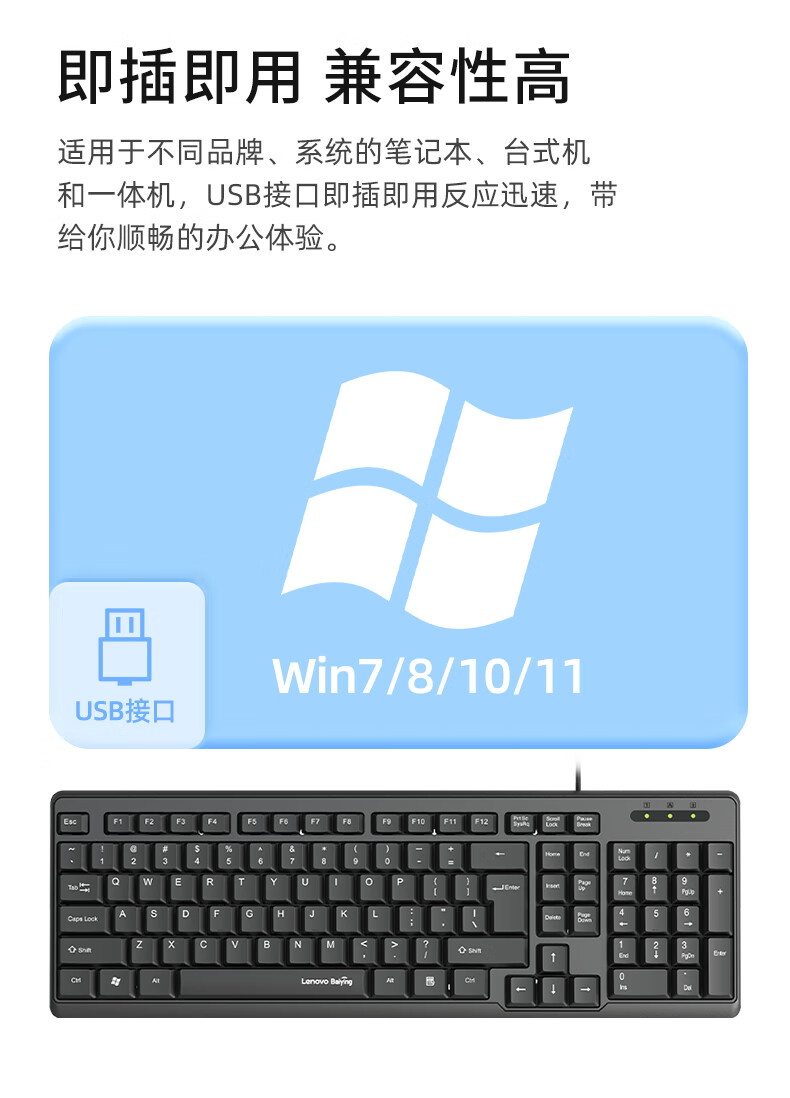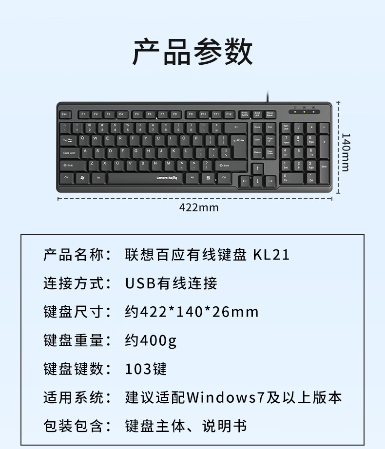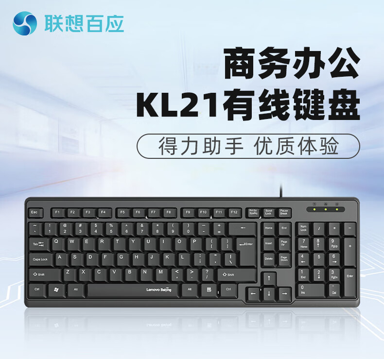 联想(lenovo)键盘KL21 有线键盘 电脑办公键盘 笔记本台式机一体机键盘黑色 USB