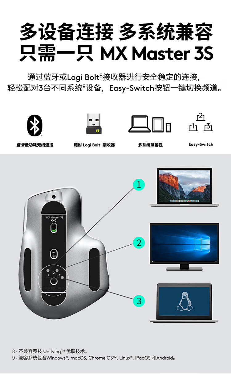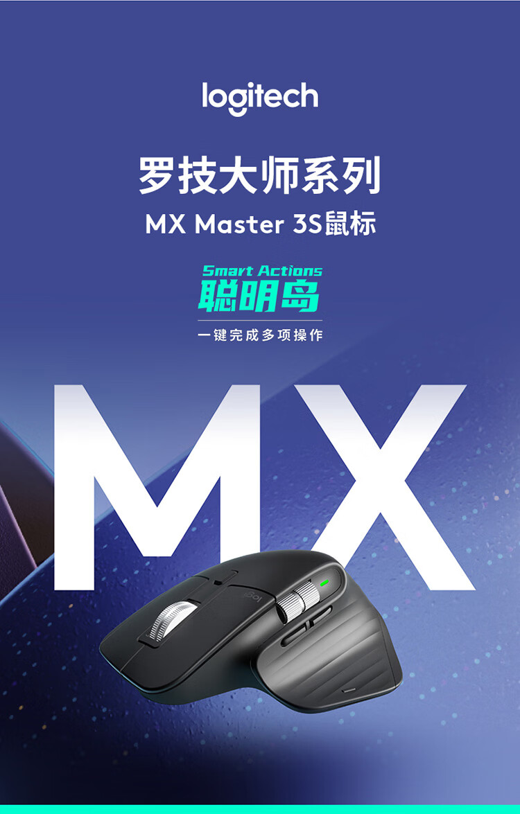罗技(Logitech)大师系列MX master 3S 无线蓝牙鼠标办公充电静音鼠标双模人体工学鼠标type-c 苹果MACipad鼠标家用 master 3S商用版