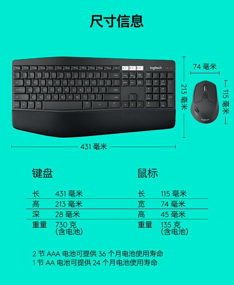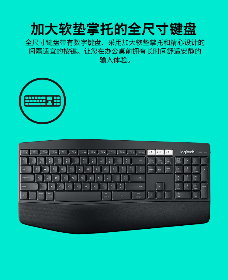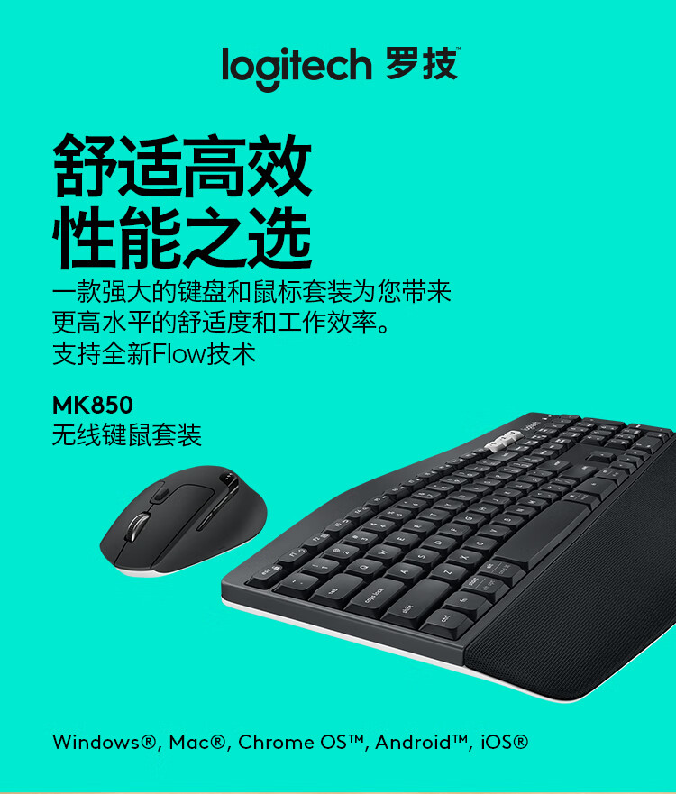 罗技(Logitech)MK850无线蓝牙键鼠套装 无线蓝牙键盘鼠标套装 办公键鼠 Mac ipad电脑键盘无线键鼠双模连接带掌托 黑色