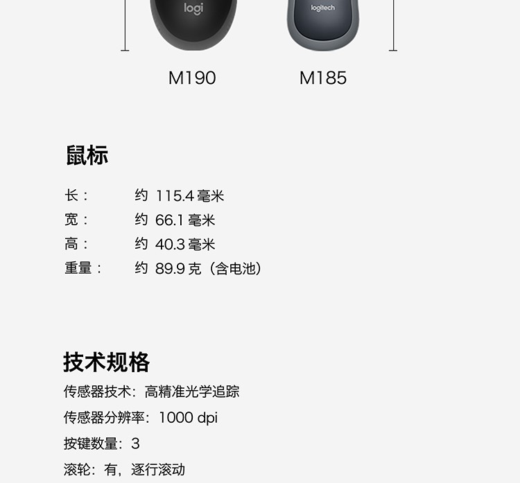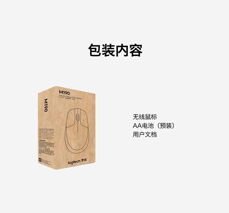 罗技(Logitech)M190 无线鼠标 笔记本电脑商务办公家用全尺寸光电鼠标 适用中大手型 红色
