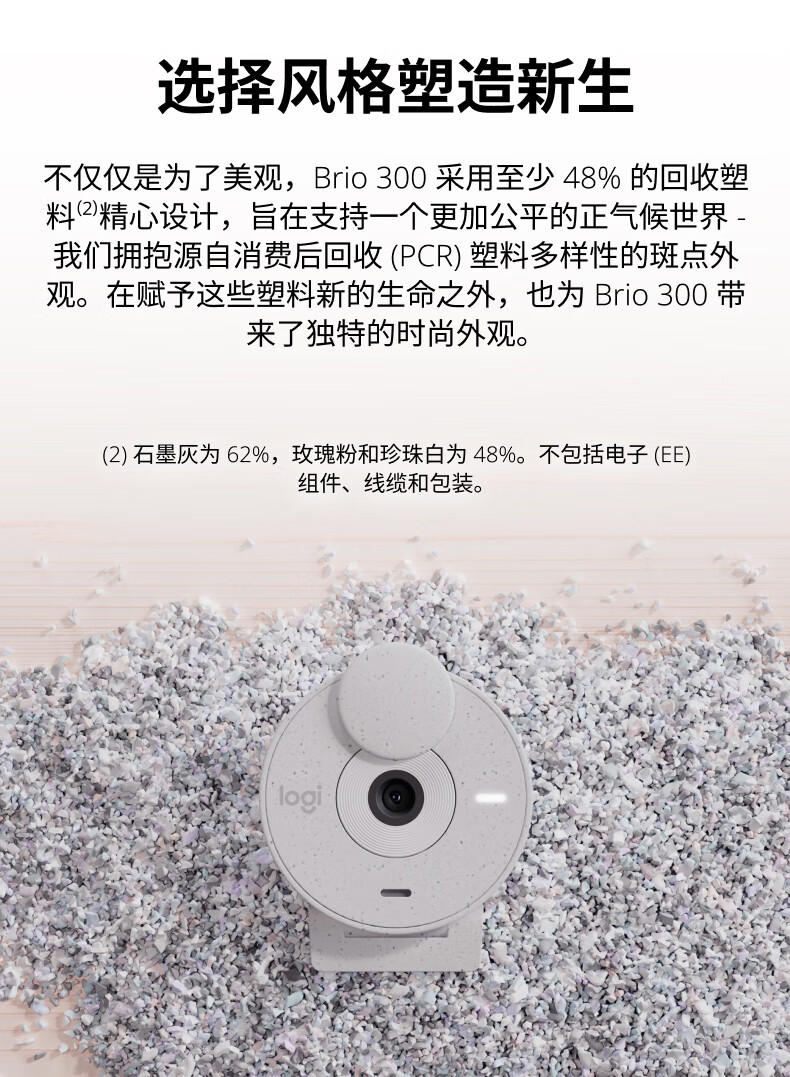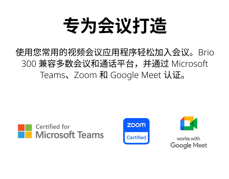 罗技(Logitech)Brio 305直播摄像头家用电脑高清会议视频通话 外接台式笔记本电脑摄像头Type-C 带麦克风隐私盖 1080P Brio 300 白色