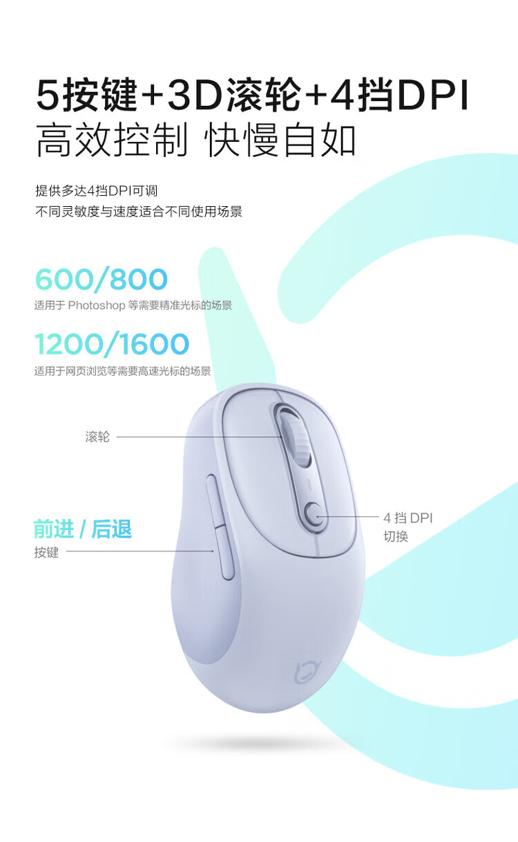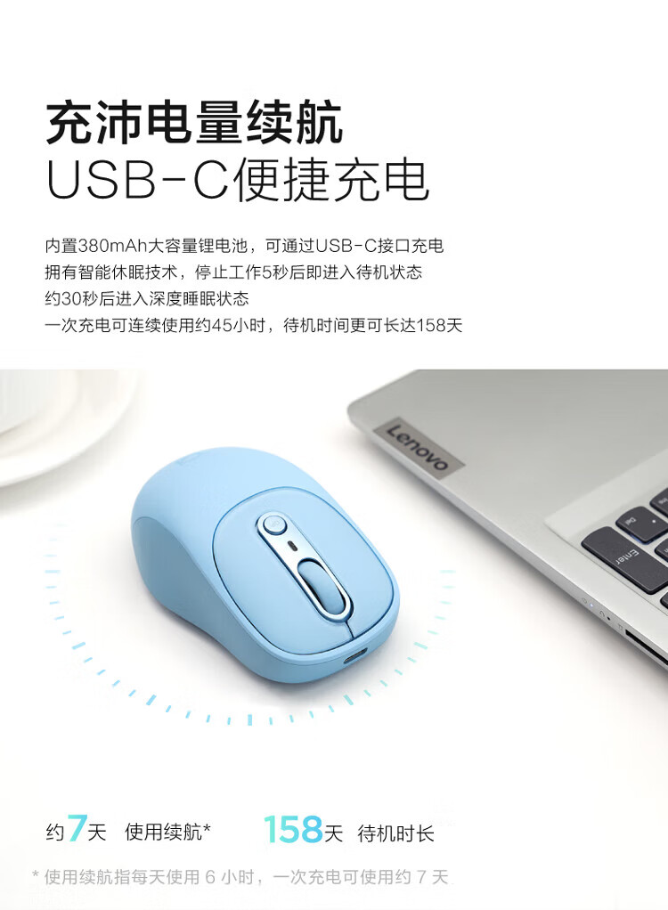联想(Lenovo)小新无线蓝牙充电鼠标Plus天青蓝 人体工学设计商务办公轻音便携华为小米戴尔华硕通用 M3单蓝牙